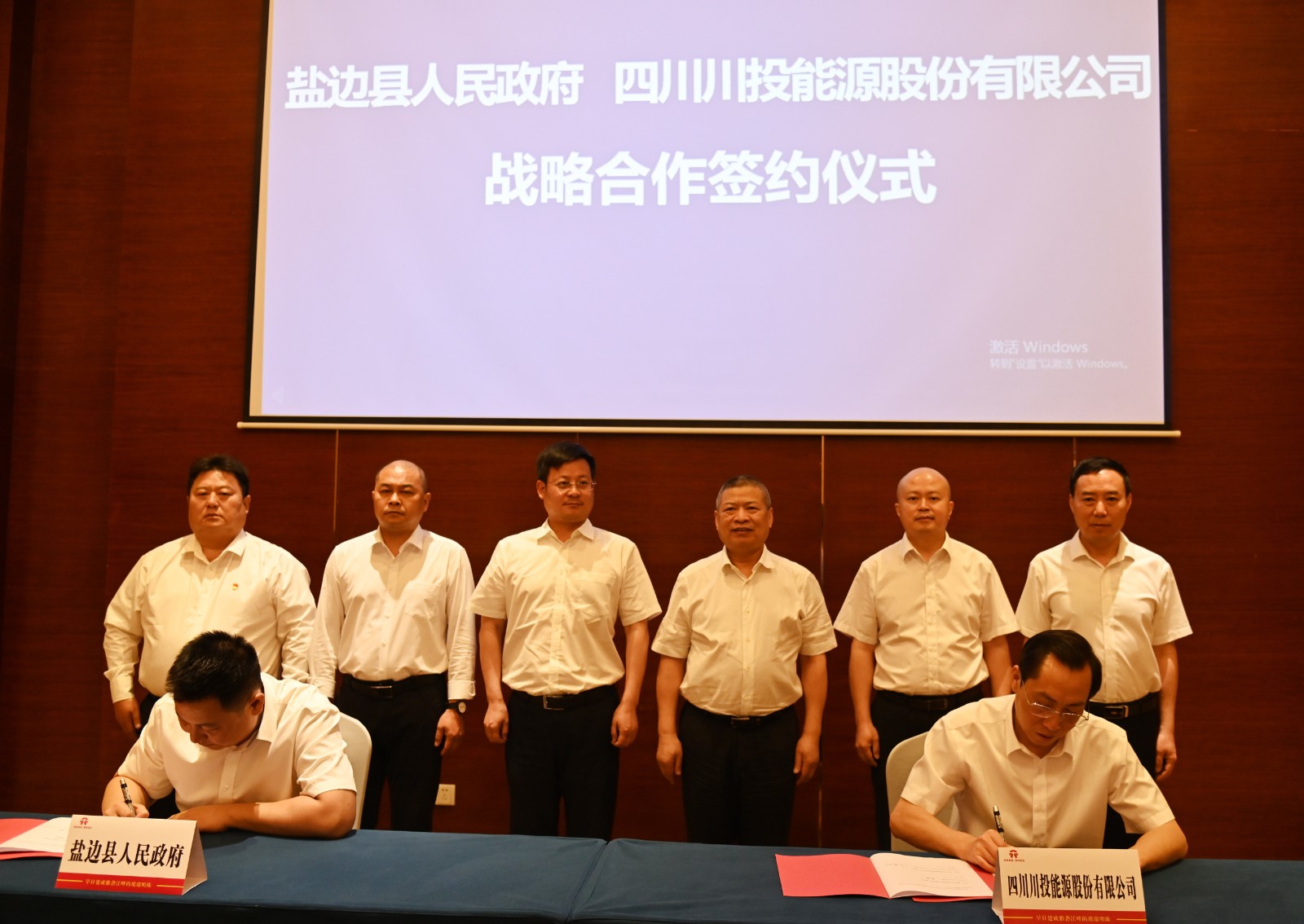 鹽邊縣政協主席周興、縣委常委、政法委書記朱林光、縣委常委、副縣長劉雨昊,縣發展改革局、縣經信科技局、縣自然資源和規劃局、縣水利局、縣經合商務局、鹽邊發展集團負責同志,川投能源相關人員共同見證簽約。