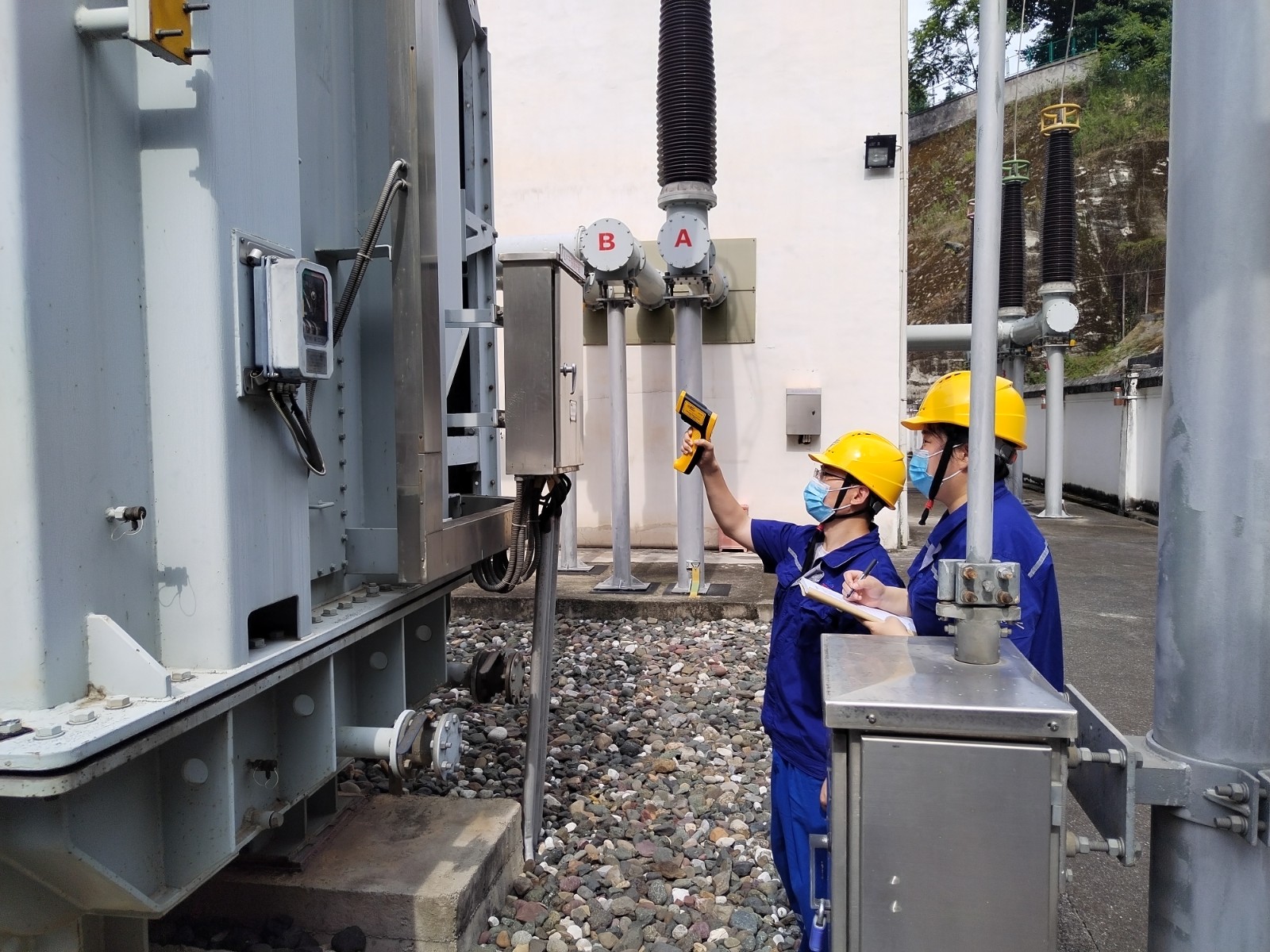 受涼山州氣候影響,較大晝夜溫差給玉田電站設(shè)備穩(wěn)定運(yùn)行增添雙重負(fù)荷考驗(yàn)。“寧做無用功,不留一隱患。”入夏以來,廠長孫萬慶始終堅(jiān)持每日帶領(lǐng)維護(hù)人員在中午高溫時段到廠區(qū),大壩等對電力設(shè)備設(shè)施開展帶電檢測和紅外測溫。7月11日午時,1號主變C相低壓側(cè)導(dǎo)管突然出現(xiàn)輕微滲油現(xiàn)象,維護(hù)人員頭頂烈日,“汗”衛(wèi)堅(jiān)守在1號主變前,精心監(jiān)視滲油狀況,研討避峰消缺方案,中控室監(jiān)控人員加強(qiáng)遠(yuǎn)方監(jiān)視,奮戰(zhàn)9小時,奮力保供電。