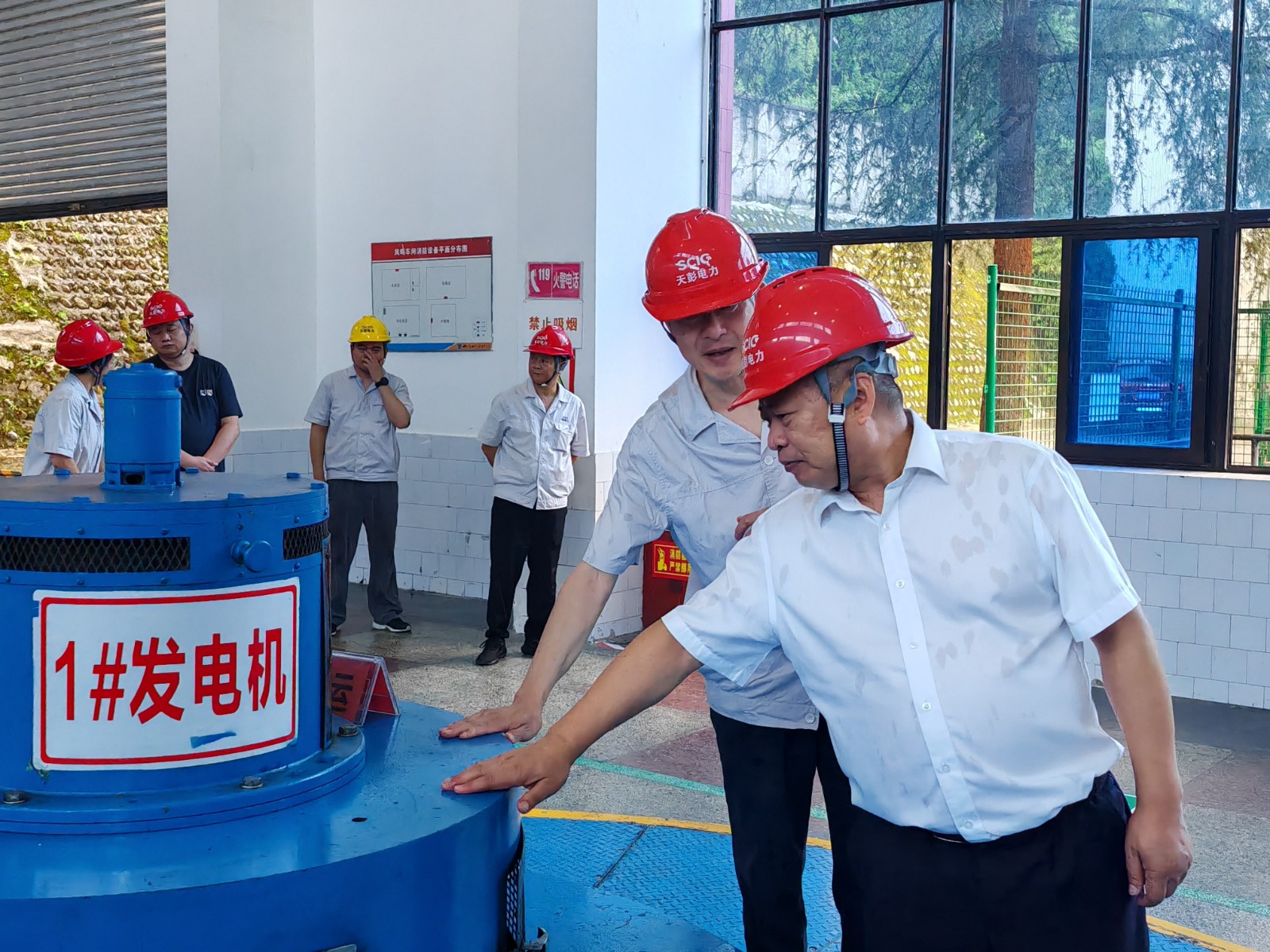 楊洪一行直奔公司鳳鳴湖水庫,現場檢查了水庫大壩運行情況和人員值班情況,詳細了解主汛期以來雨情、水情和防汛預警響應情況、大壩水工建筑物、閘門啟閉設備、應急保障電源、防汛物資配備等情況,并抽查了水庫巡查、庫區游客勸離及應急預案演練記錄等資料。隨后,楊洪一行前往鳳鳴橋車間,對車間發電機組等重要設備運行工況等情況進行了認真檢查。