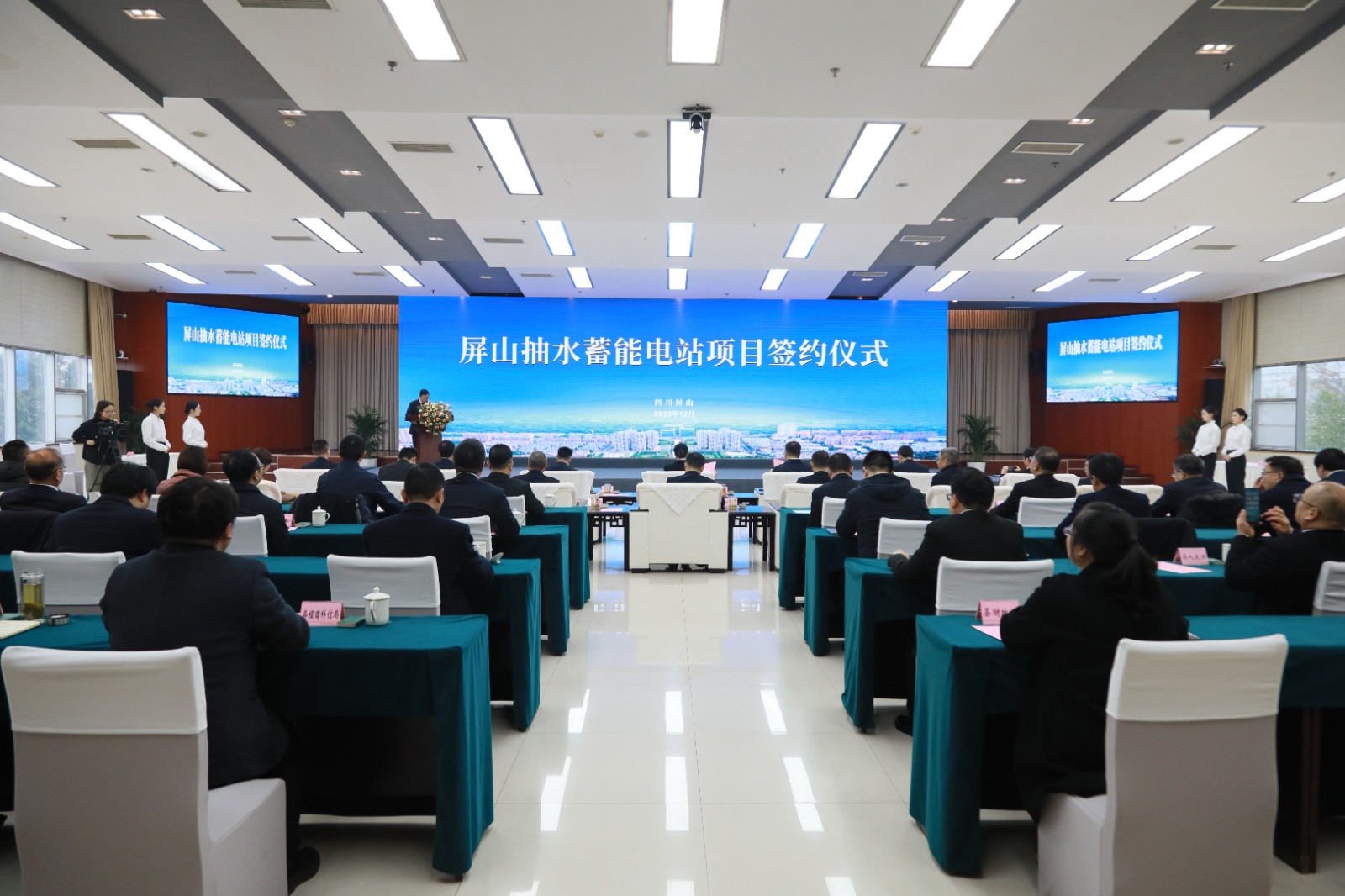 12月29日,屏山縣人民政府與四川川投能源股份有限公司、雅礱江水電開發公司、葛洲壩集團聯合體簽訂屏山抽水蓄能電站項目投資合作協議。川投集團黨委書記、董事長,川投能源董事長吳曉曦;川投集團黨委副書記、副董事長、總經理李文志;宜賓市委副書記曾令舉;市政府副市長周文宇;川投集團副總經理張昊;葛洲壩集團三峽建設公司副總經理許華;葛洲壩集團市場投資開發部副總經理李博;中國電建集團成勘院副總經理鞠其鳳;川投能源黨委書記、副董事長、總經理楊洪;川投集團總經理助理、戰投部部長田傳平;雅礱江水電開發公司副總工程師范林;市能源局副局長邵睿;屏山縣委書記代軍;縣委副書記、縣長趙丹;縣人大常委會主任冷遠林;縣政協主席林敏;縣委副書記羅昕出席簽約儀式。