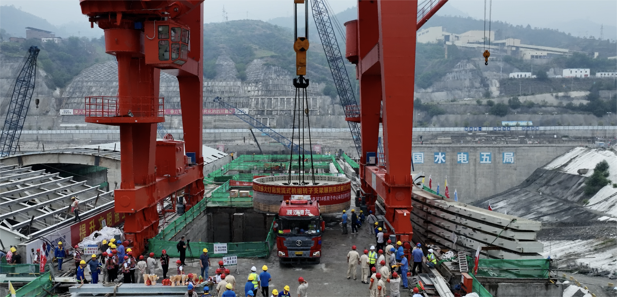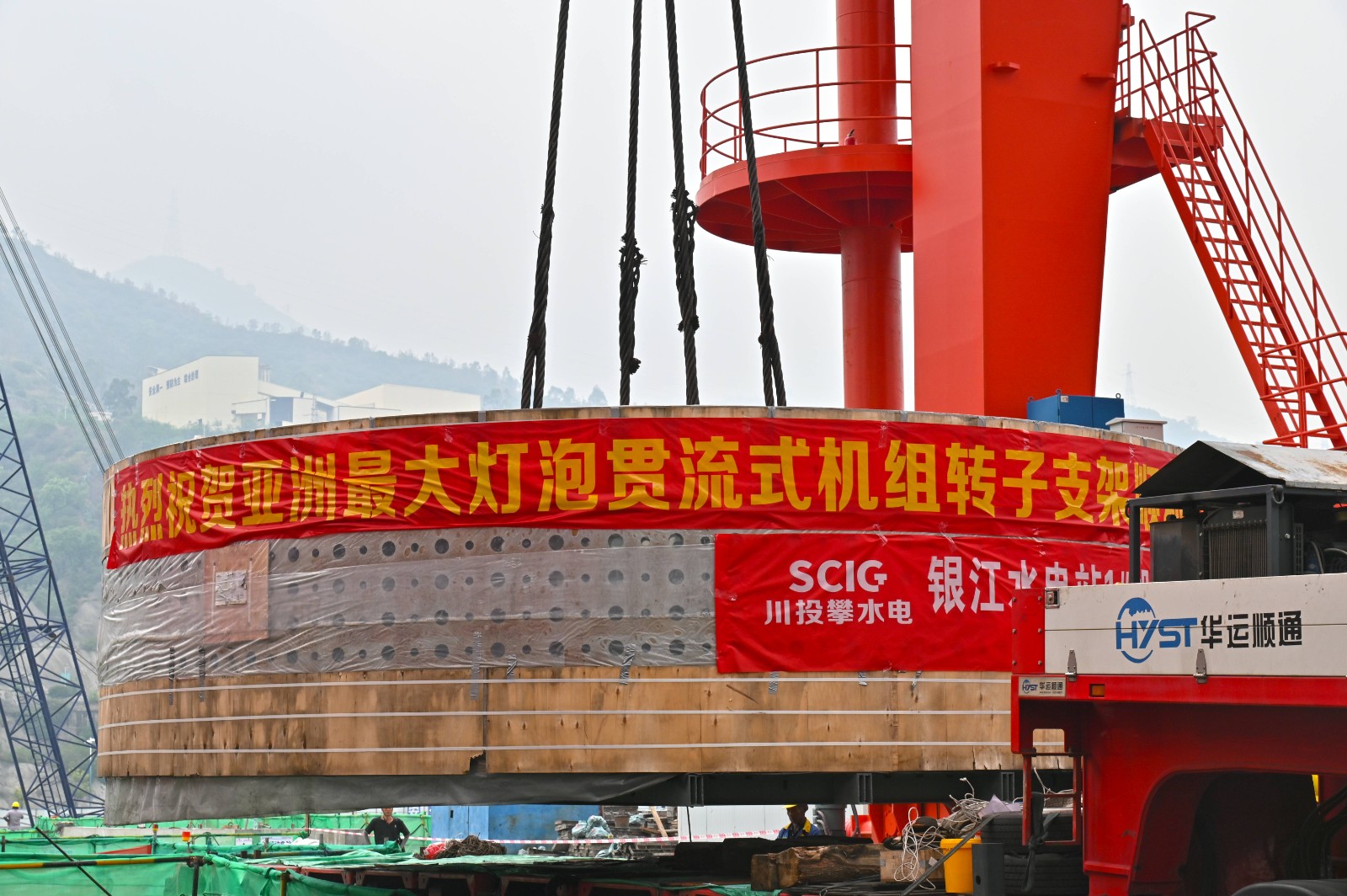 亞洲最大燈泡貫流式機組轉子支架安全抵達 銀江水電站并順利吊卸