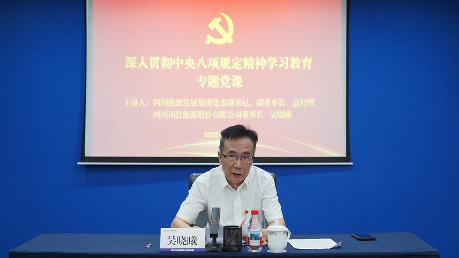 7月16日,四川能源發(fā)展集團黨委副書記、副董事長、總經(jīng)理吳曉曦赴川投能源講授深入貫徹中央八項規(guī)定精神學習教育專題黨課,圍繞加強黨的作風建設特別是深入貫徹中央八項規(guī)定精神,以“深學篤行強作風 踔厲奮發(fā)新征程 以過硬作風為能源集團改革發(fā)展保駕護航”為題,與公司黨員交流認識體會,川投能源黨委書記、副董事長、總經(jīng)理楊洪主持。