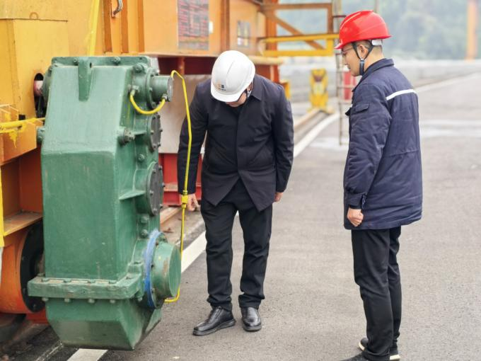 劉勝金一行先后來到百花灘電廠、高奉山電廠、槽漁灘電廠的大壩、中控室、發電廠房、檢修現場等關鍵生產區域以及炭素廠廠區,詳細了解生產經營運行情況、安全生產全流程管控措施、職工思想政治建設、基層黨建及“四季暖陽”愛心驛站(百花灘電廠站)工作推進情況,并就當前工作中的重點難點問題與現場職工深入交流。期間,聽取各所屬企業主要負責人關于冬季安全管理工作落實、機組檢修推進、人員結構優化、負極材料行業市場形勢等方面情況匯報。