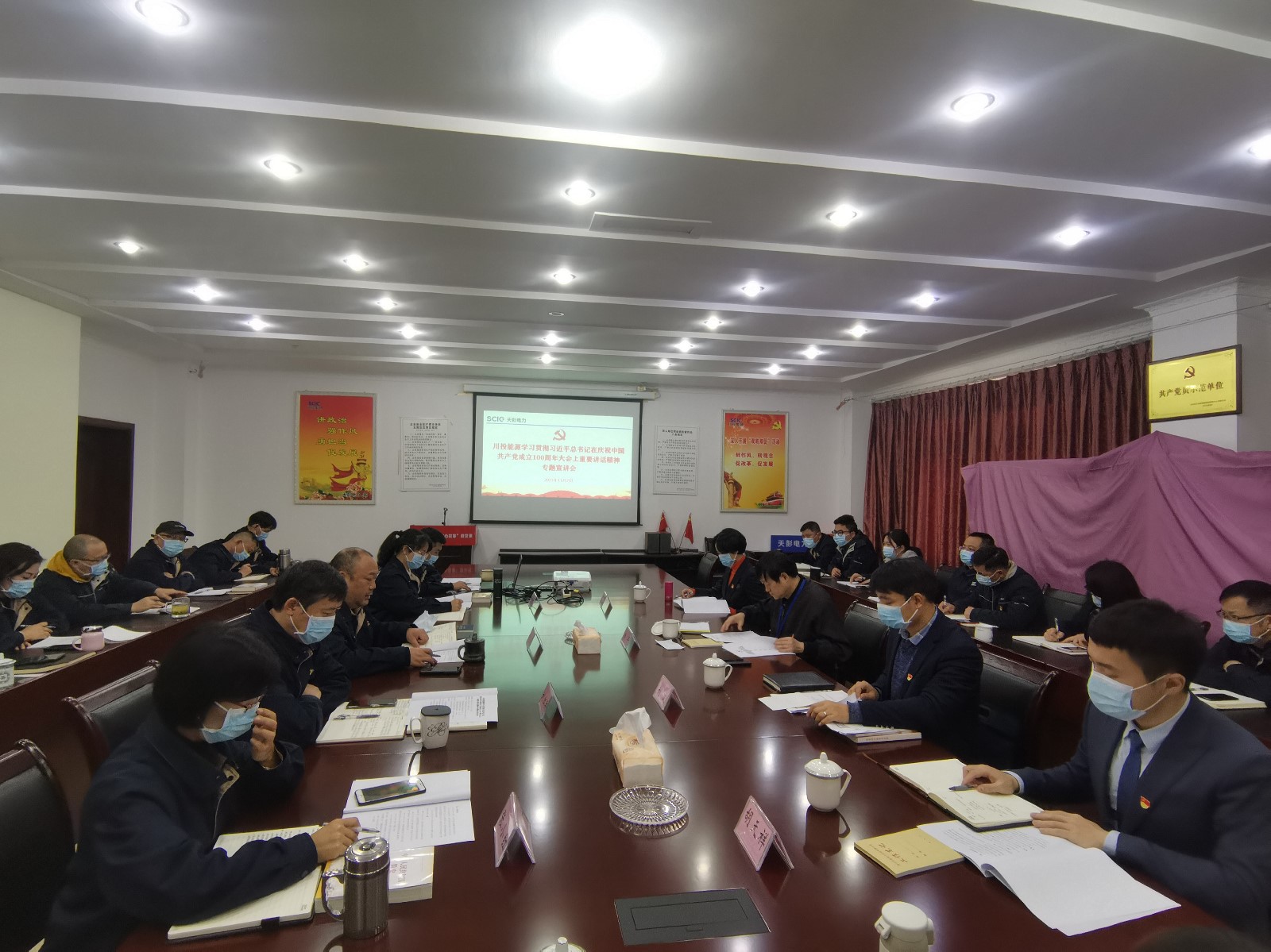 川投能源法務(wù)部副經(jīng)理劉波、黨群工作部袁敏、戰(zhàn)略發(fā)展部胡天祥,天彭電力班子成員、各部門車間黨員干部、關(guān)鍵崗位人員參加宣講會。