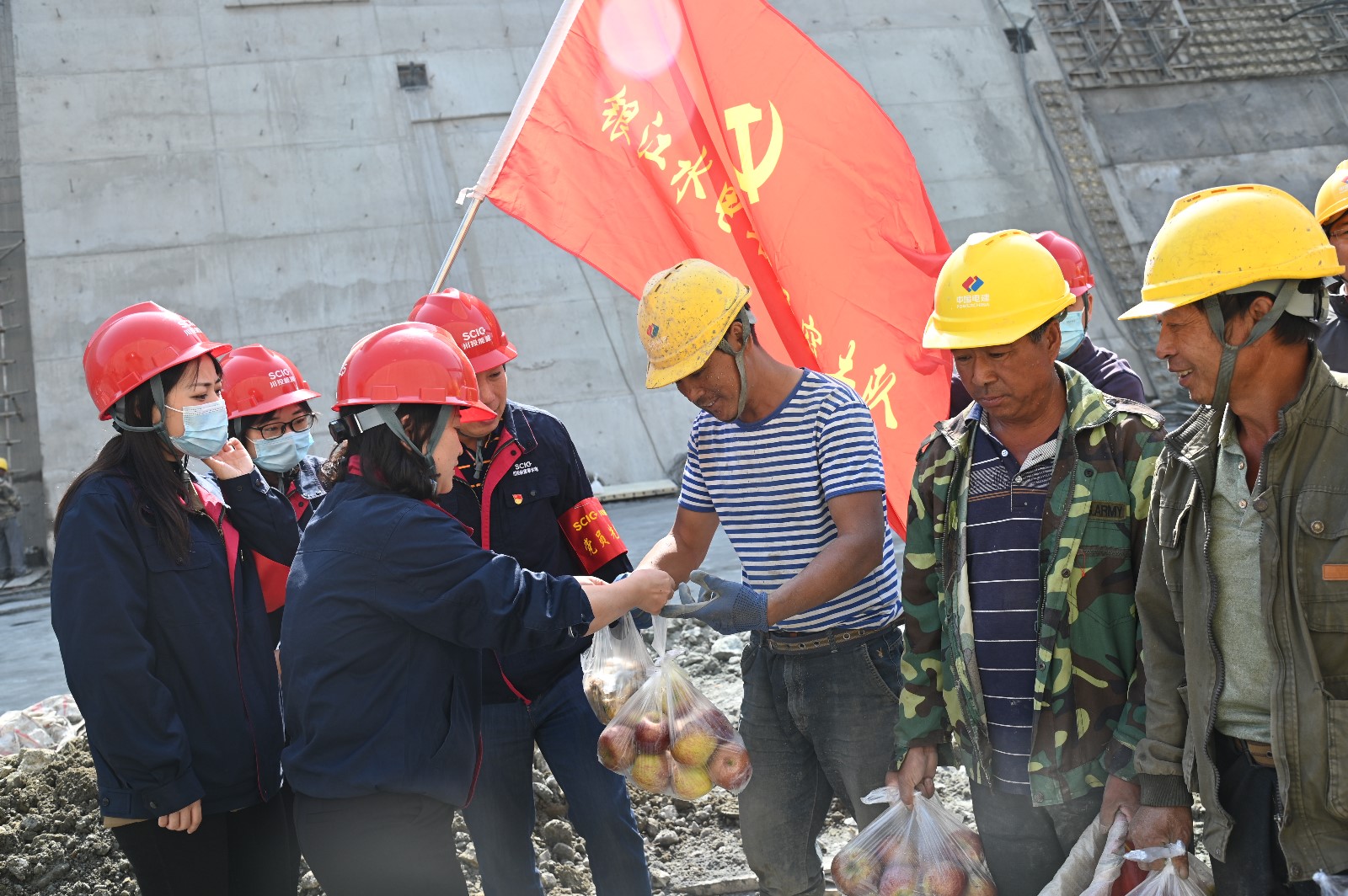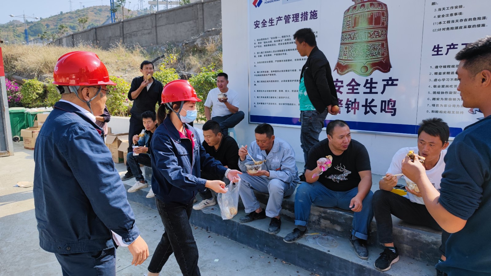 通過(guò)近日對(duì)施工班組的了解,為確保大江截流的目標(biāo)按期實(shí)現(xiàn),工人們中午、晚上用餐都是送到施工現(xiàn)場(chǎng)簡(jiǎn)單解決,11月9日,機(jī)關(guān)第一黨支部組織了以“工人在加班,我為工人送加餐”的主題黨日活動(dòng),組織支部黨員、預(yù)備黨員、入黨積極分子、志愿服務(wù)者共15人到導(dǎo)流明渠施工現(xiàn)場(chǎng),慰問(wèn)在施工現(xiàn)場(chǎng)加班加點(diǎn)的一線工人,為他們送去了雞腿、蘋(píng)果等慰問(wèn)品。