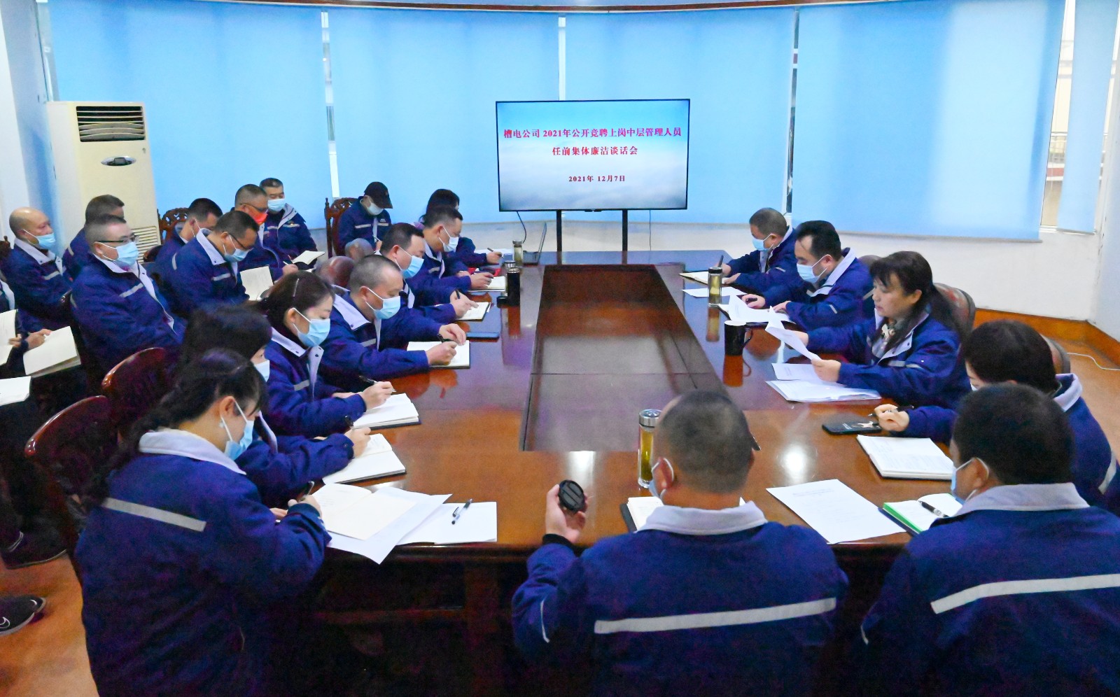 為了貫徹落實集團公司關于進一步深化“三項制度改革”精神,槽漁灘公司于2021年11月開展了中層管理人員全員公開競聘工作。26名管理人員經組織考察、競聘答辯、群眾監督三個環節成功競聘。12月7日上午,按照全面從嚴治黨和黨風廉政建設要求,增強中層管理人員廉潔從業意識和拒腐防變能力,公司紀委組織新競聘上崗的中層管理人員進行任前集體廉潔談話。川投電力黨委書記、董事長兼槽漁灘公司黨委書記、董事長楊濤,黨委委員、總經理何光富,黨委委員、紀委書記謝愛東出席會議,并分別對參會人員進行了廉潔談話。會議由紀委書記謝愛東主持。