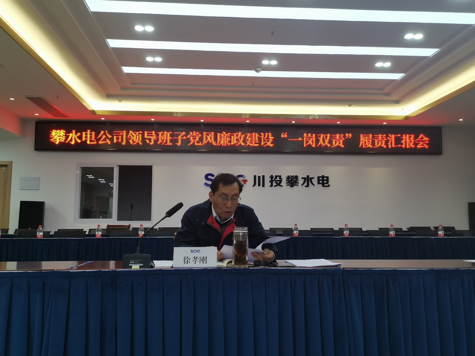 為貫徹落實全面從嚴治黨總體要求,進一步強化公司黨總支全面從嚴治黨主體責任考核工作,根據(jù)中共中央辦公廳《黨委(黨組)落實全面從嚴治黨主體責任規(guī)定》以及川投能源黨委《落實全面從嚴治黨主體責任考核實施辦法》等相關(guān)規(guī)定要求。2021年12月13日,川投能源副總經(jīng)理、攀水電公司黨總支書記、董事長徐孝剛組織召開專題會議,聽取4名領(lǐng)導班子成員(黨總支委員)落實黨風廉政建設(shè)“一崗雙責”情況匯報。