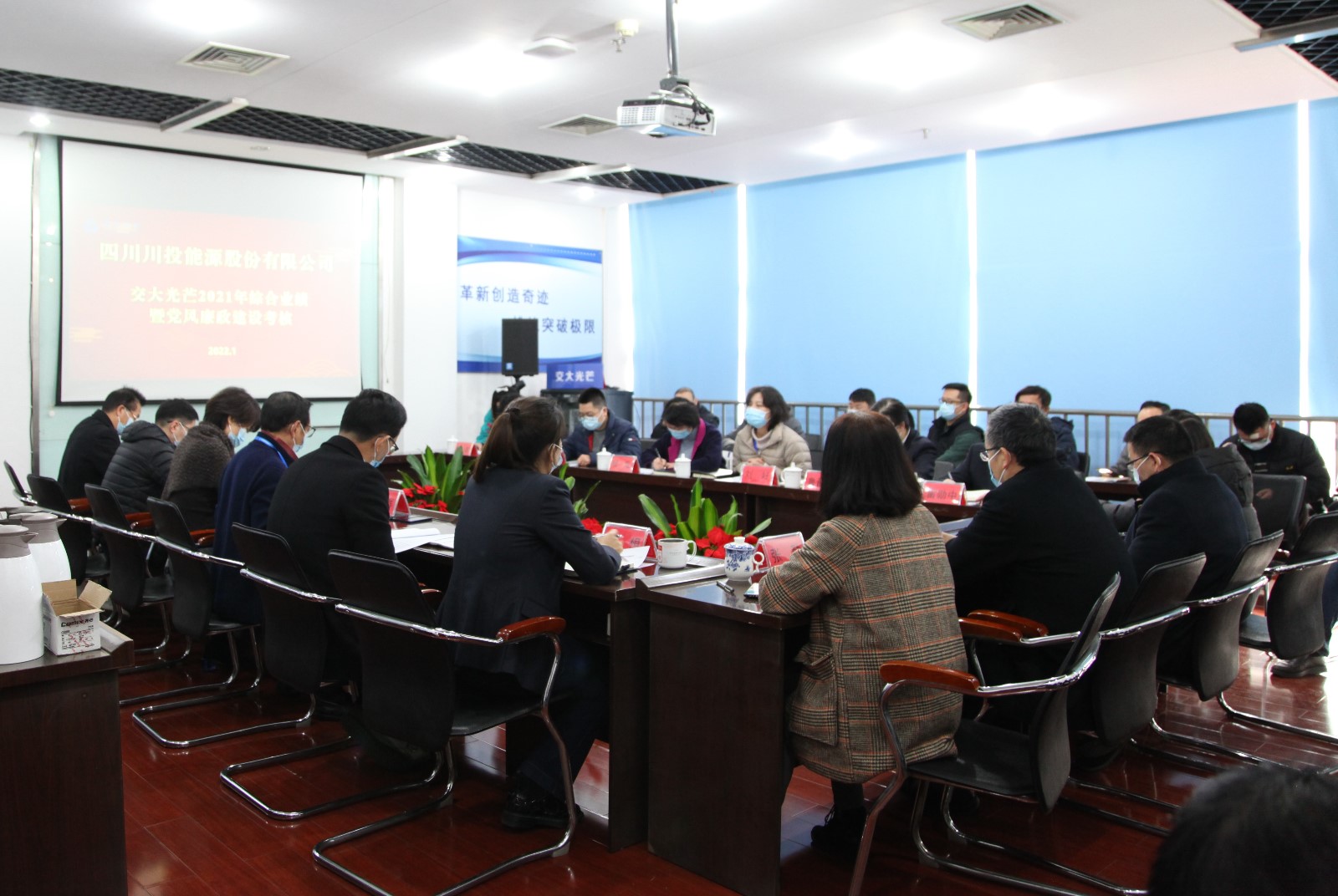 根據川投能源2021年度考核工作的統一部署,1月11日,川投能源黨委委員、財務總監、考核組長劉好率隊赴交大光芒開展2021年度綜合業績暨黨風廉政建設考核工作。川投能源考核組、交大光芒經營班子、中層副職以上管理人員及一線員工代表參加考核會,川投能源證券事務部、資本運營部經理魯晉川主持會議。