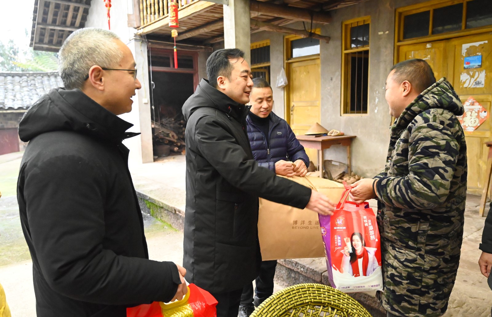 新春佳節即將來臨之際,為把槽漁灘公司的關懷和溫暖送到鄉村振興聯系戶的手中,讓他們度過一個歡樂喜慶的節日。1月12日,公司黨委書記、董事長楊濤帶領公司鄉村振興幫扶干部一起到槽漁灘鎮文山村看望聯系戶,為他們送上了節日的禮物與祝福。