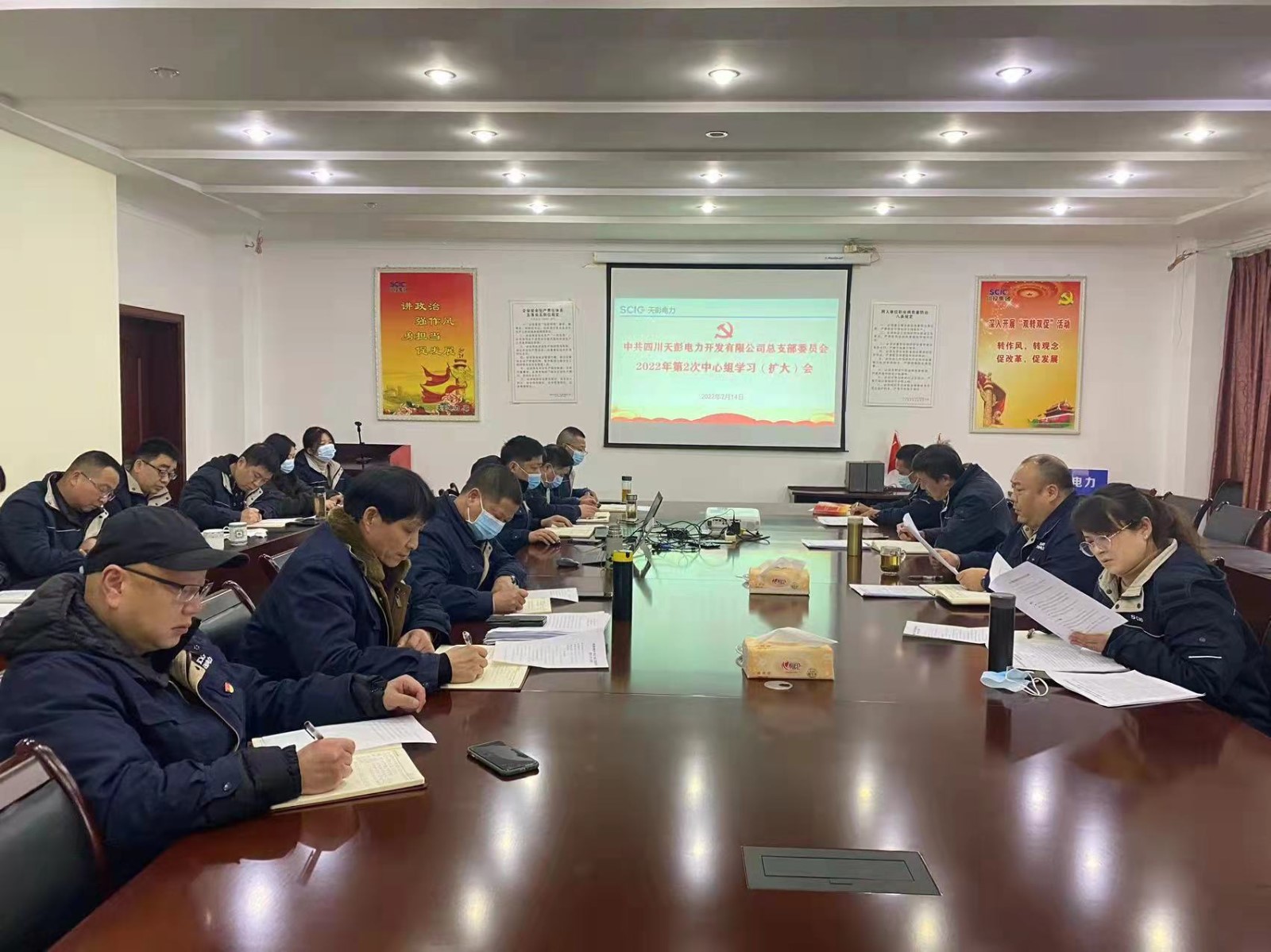 2月14日下午,天彭電力黨總支在公司二樓會議室召開2022年第2次中心組學(xué)習(xí)(擴大)會,專題學(xué)習(xí)研討2021年度基層黨組織組織生活會學(xué)習(xí)內(nèi)容,為開好組織生活會、做好民主評議黨員工作打牢思想基礎(chǔ)。公司領(lǐng)導(dǎo)、黨員干部、關(guān)鍵崗位人員參加會議,會議由公司黨總支書記、董事長、總經(jīng)理陳忠主持。