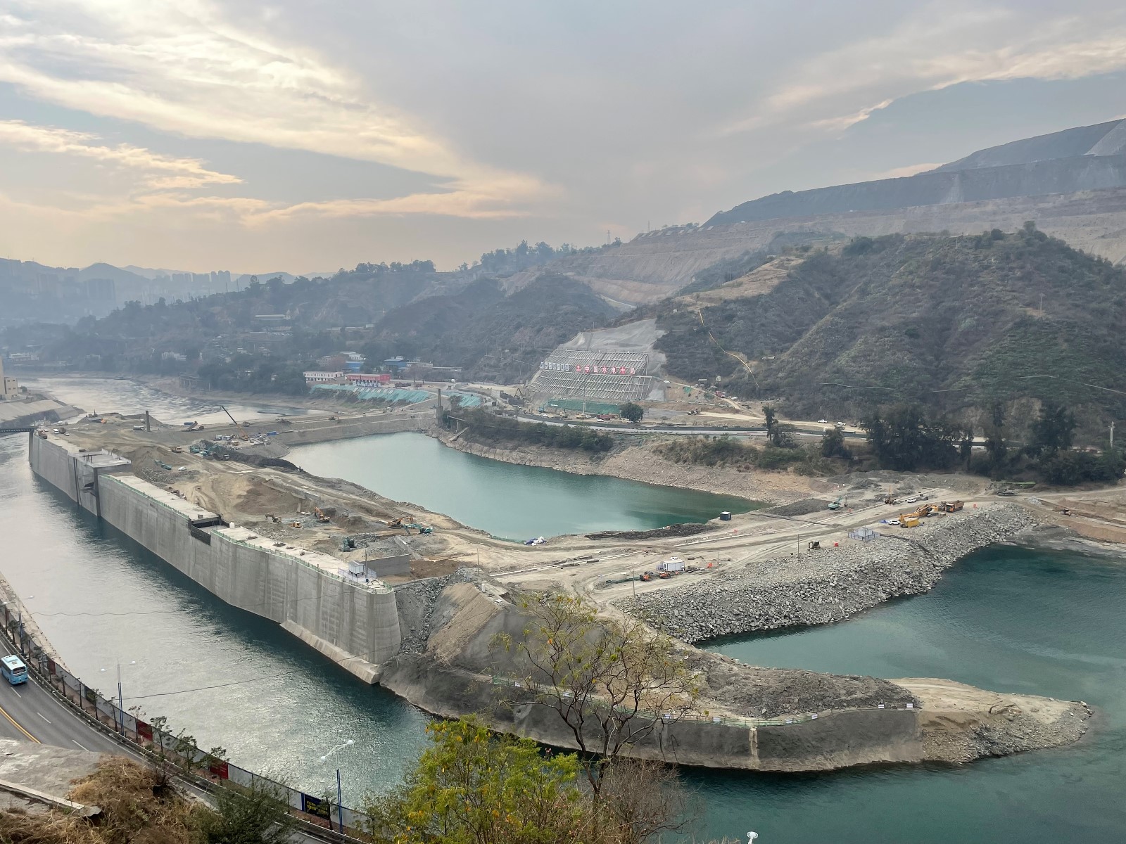 面對二期圍堰工期緊等實際困難,公司組織施工單位合理配置施工資源,精心組織現場施工,水電五局項目部領導春節期間帶頭堅守崗位,施工現場正常組織施工,順利完成二期圍堰閉氣重要節點目標,下一階段將重點做好圍堰加高培厚及土工膜安裝工作,確保汛前能按期完成施工;面對銀江大橋爭取2023年春節前具備通車條件的要求,公司認真組織審核施工方案,督促落實各項安全措施,重點關注掛籃安裝等工作,1#橋墩0#節段、右岸連接道路、下穿箱涵開挖等全部按照計劃順利推進;面對左岸邊坡開挖支護、G353國道改建與污水管道代建及地下管線遷改存在的施工干擾問題,公司積極與政府部門及主要參建單位溝通協商,明確布置方案及節點目標,做好交叉施工保障措施,各項工作正按照既定目標有序推進;面對即將來臨的汛期,公司提前組織開展地災隱患排查工作,針對檢查發現的問題下發整改通知,并督促施工單位認真整改,確保汛前完成整改工作。