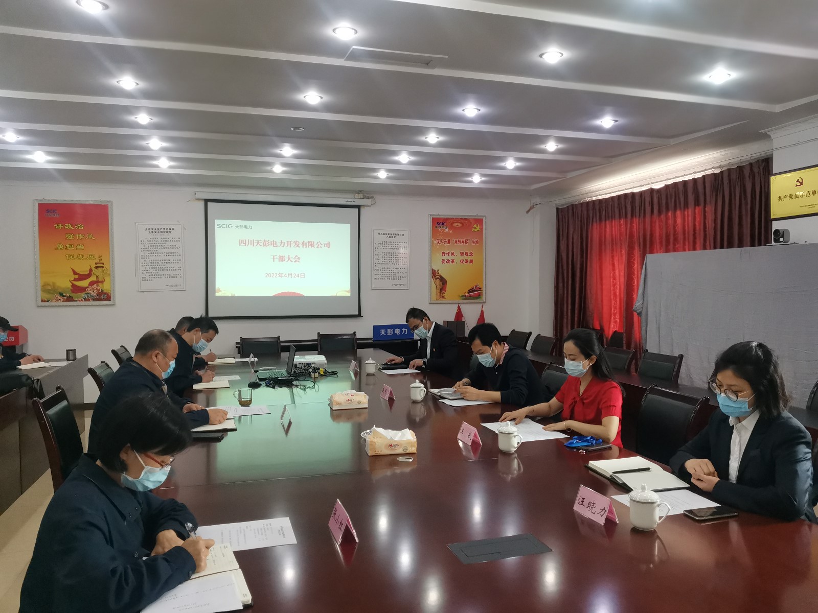 4月24日,天彭電力召開公司干部大會,川投能源黨委委員、紀(jì)委書記戴月洪、人力資源部經(jīng)理王歆、紀(jì)檢工作部副主任肖堯出席大會,天彭電力領(lǐng)導(dǎo)班子成員、中層以上干部參加會議,會議由王歆主持。