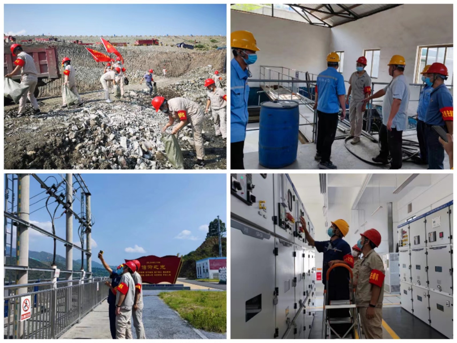 參加活動的黨員共分成5個服務小組,由支部中的黨員領導和各支委任組長,到施工現場分頭行動,提前了解各項保障措施和澆筑準備情況。技術服務組到澆筑工作面詳細了解澆筑倉號的準備情況,并現場提供技術指導;物資服務組對砂石骨料、水泥粉煤灰、外加劑等原材料的儲備和質量進行了詳細了解,對拌合樓的運行情況進行了檢查;保電服務組對施工變電站、施工用電線路、現場施工用電設備進行了詳細檢查。安全服務組在開展安全隱患排查的同時,開展了工地大掃除,對工區衛生進行了清潔。