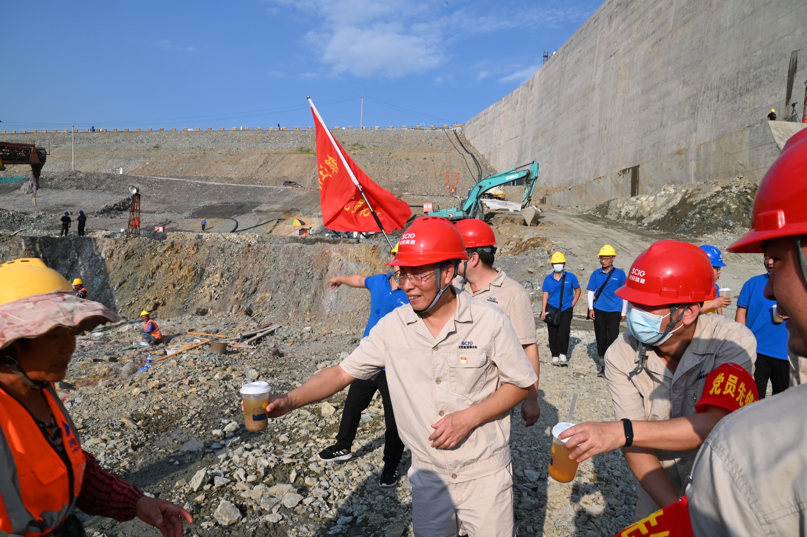 29日下午,泄水系統消力池首倉混凝土澆筑按期順利澆筑,工地慰問組的黨員同志,為工友們送上了精心熬制的綠豆湯,叮囑大家在炎炎烈日下開展混凝土澆筑注意防暑降溫。