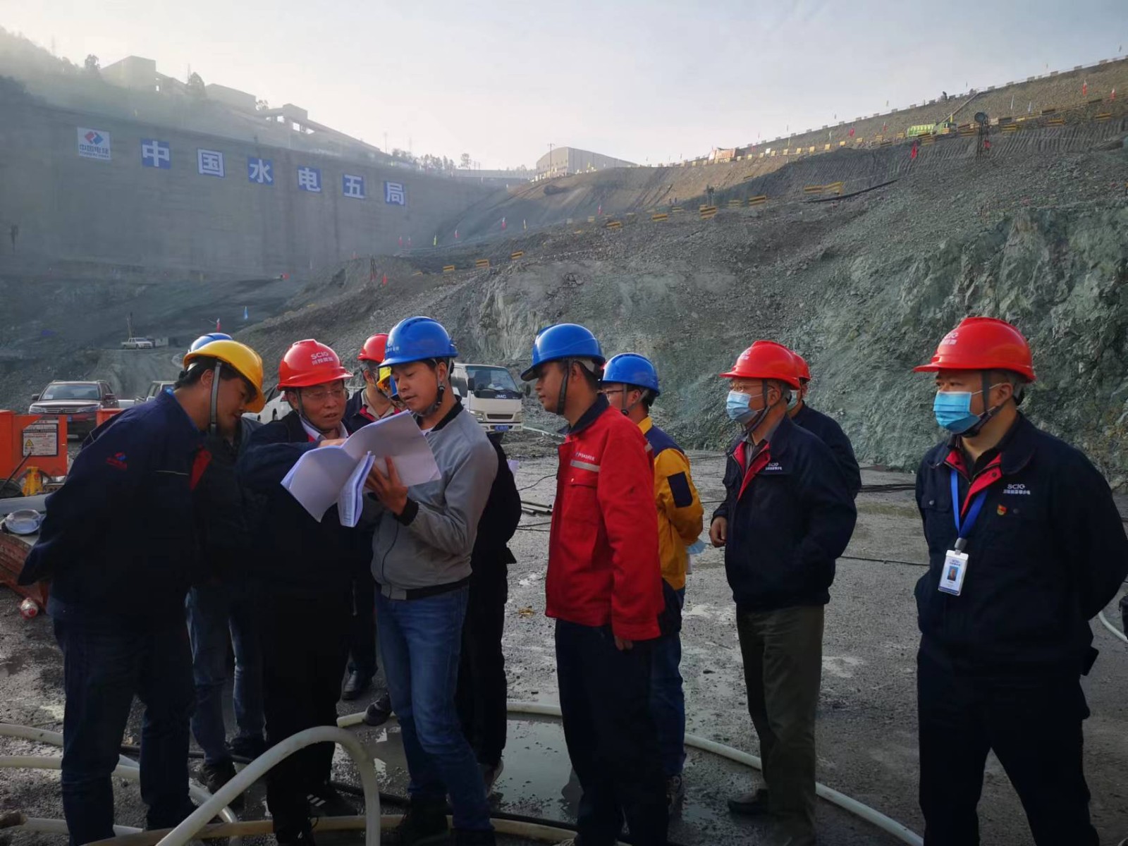 在宣講前,徐孝剛深入銀江水電站廠房和大壩基坑施工現場進行了檢查調研,詳細了解目前的施工進度及下步施工安排,并立即組織公司相關部門和設計、監理等單位現場研究,及時解決存在的困難,確保銀江水電站順利施工。現場調研完后,徐孝剛立即前往水電五局銀江項目黨支部進行了黨的二十精神大專題宣講,主要從5個深刻領會以及堅定推動黨的二十大決策部署在攀水電公司、攀新能源公司落地見效等6個方面進行了深入淺出的講解。