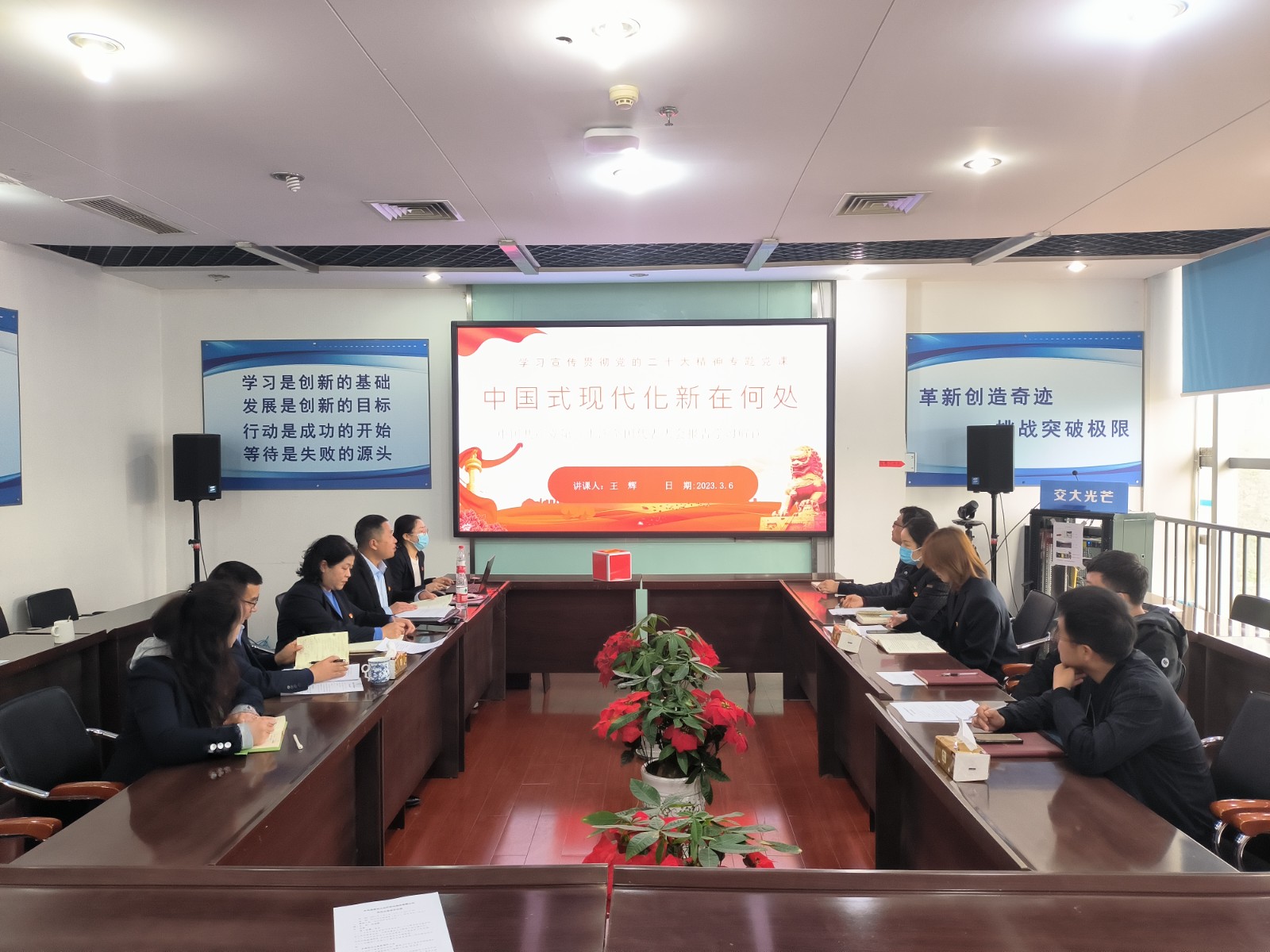 3月6日,為全面深入學(xué)習(xí)領(lǐng)會(huì)貫徹落實(shí)黨的二十大精神,打牢開好組織生活會(huì)的思想基礎(chǔ),交大光芒第一黨支部召開黨員大會(huì),集中學(xué)習(xí)習(xí)近平同志在學(xué)習(xí)貫徹黨的二十大精神研討班開班式上發(fā)表重要講話、中國(guó)共產(chǎn)黨第二十屆中央委員會(huì)第二次全體會(huì)議公報(bào)。第一支部書記、公司副總工程師兼研發(fā)中心副總經(jīng)理王輝以《中國(guó)式現(xiàn)代化新在何處》為題進(jìn)行專題黨課。