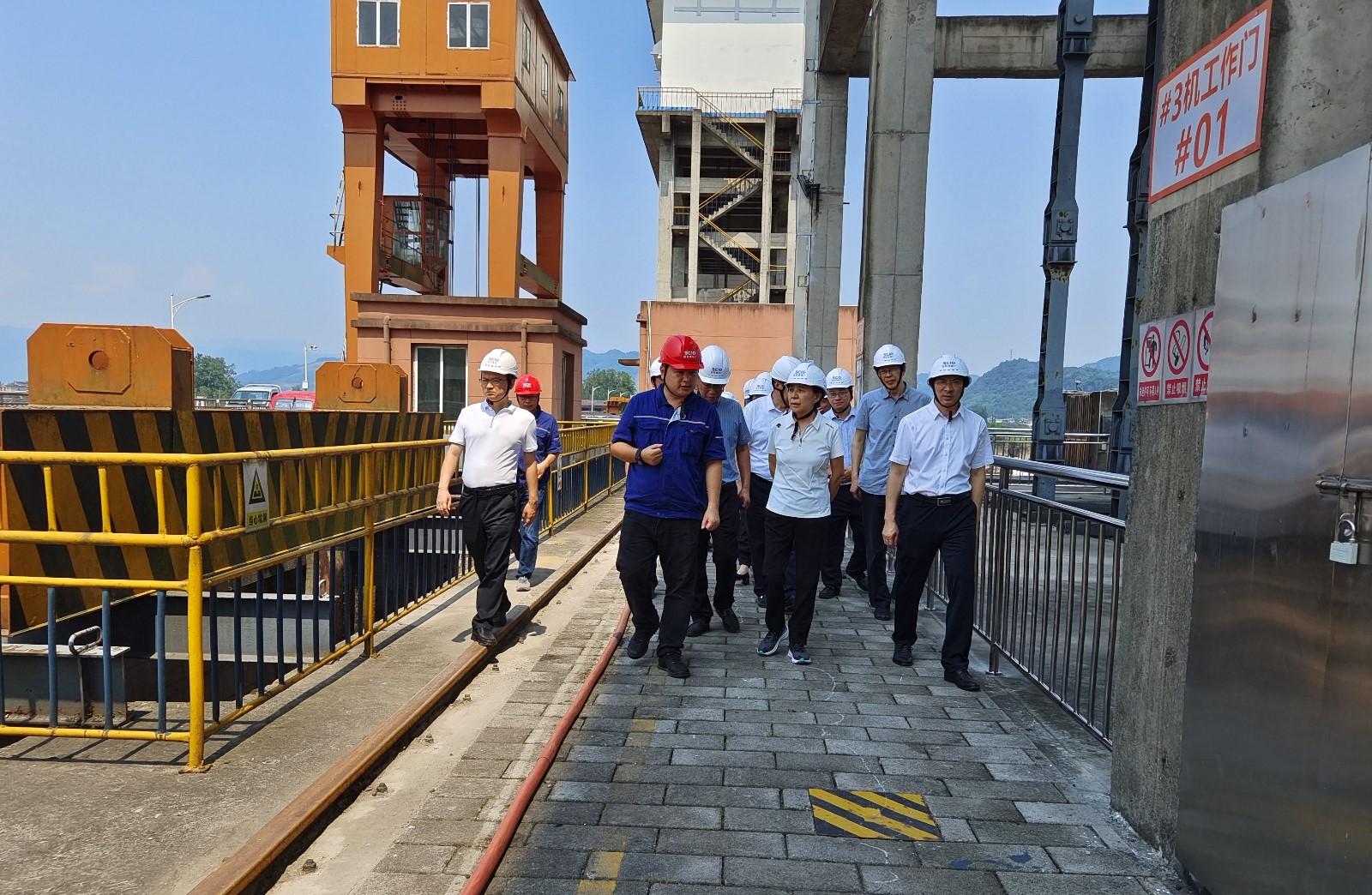 祝春秀一行實地察看大壩前池、泄洪沖砂閘等水工建筑物,聽取了電廠防汛減災、生態流量下泄和漂浮物打撈工作情況匯報,對電廠相關工作給予充分肯定,并根據視察情況提出意見和建議。