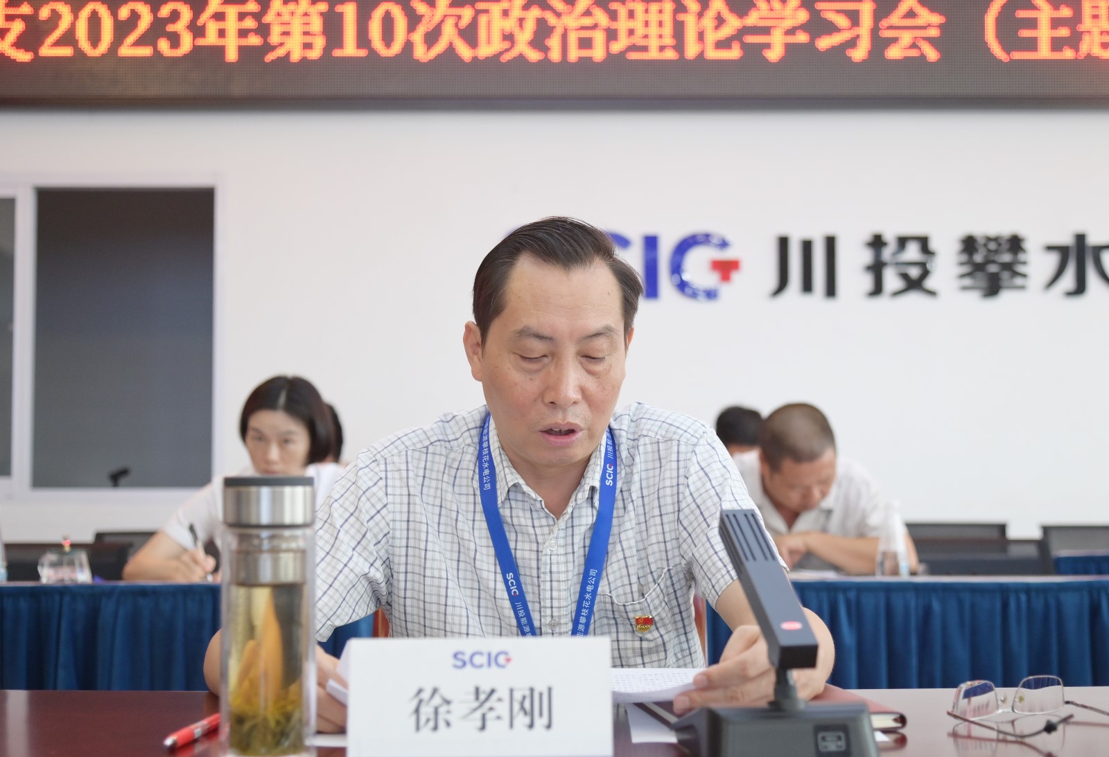 為打牢開好主題教育專題組織生活會的思想基礎,進一步統一思想、深化認識,8月27日上午,攀水電黨總支召開2023年第10次政治理論學習(擴大)會議,專題學習貫徹習近平新時代中國特色社會主義思想主題教育組織生活會。公司黨總支書記、董事長徐孝剛主持會議并進行了研討發言。黨總支政治理論學習會成員、全體黨員、非黨干部、入黨積極分子共40余人參加學習。