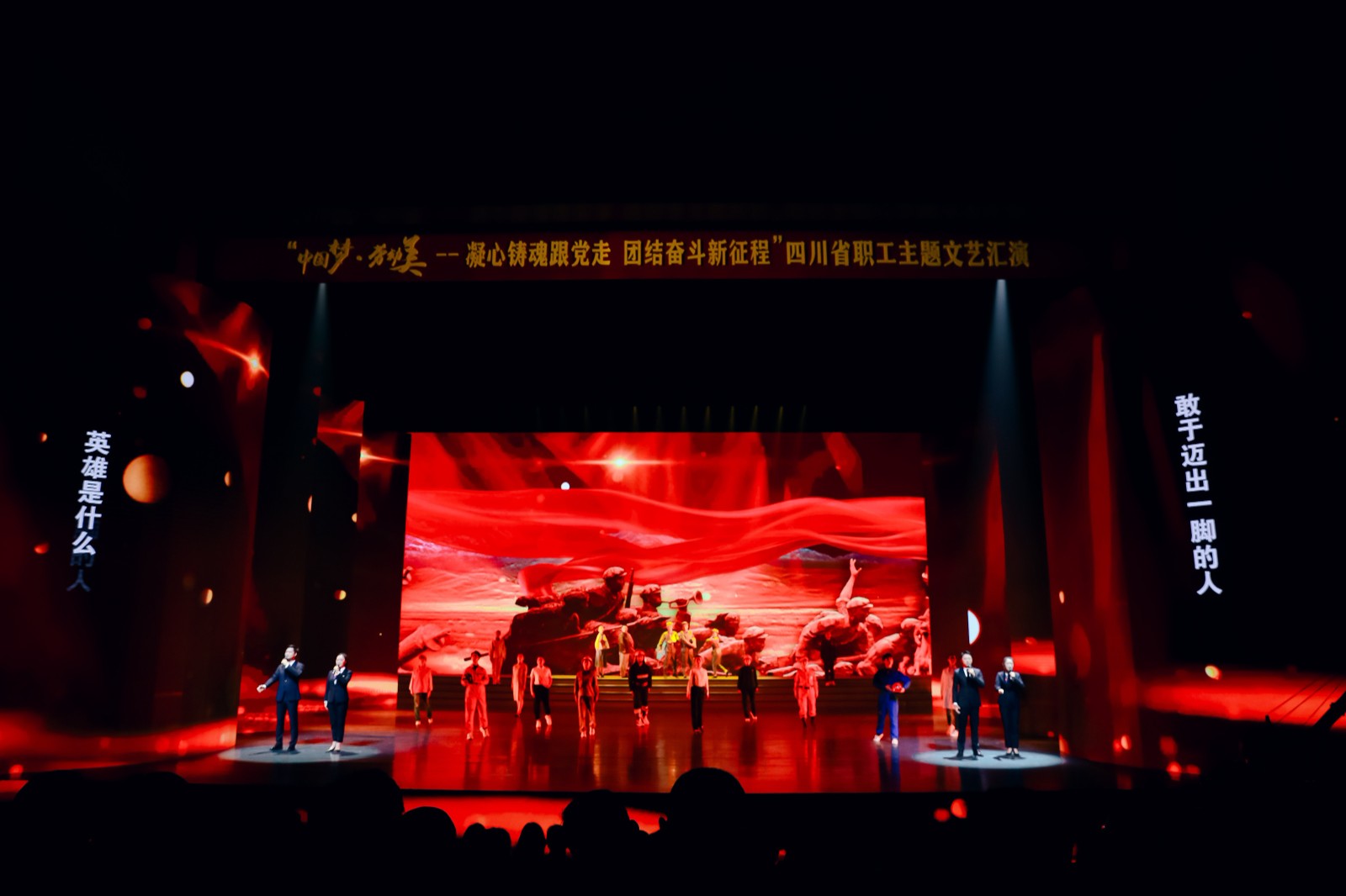 11月22日晚,“中國(guó)夢(mèng)?勞動(dòng)美——凝心鑄魂跟黨走 團(tuán)結(jié)奮斗新征程”四川省職工主題文藝匯演在成都華僑城大劇院舉行。川投集團(tuán)工會(huì)選送的誦讀作品《新時(shí)代的英雄》在舞臺(tái)上精彩亮相。該節(jié)目曾榮獲四川省第二屆職工誦讀比賽金獎(jiǎng),本次經(jīng)過(guò)層層選拔,由川投能源作為主創(chuàng)班底,聯(lián)合川投信產(chǎn)、資陽(yáng)口院選送優(yōu)秀選手共同呈現(xiàn)。