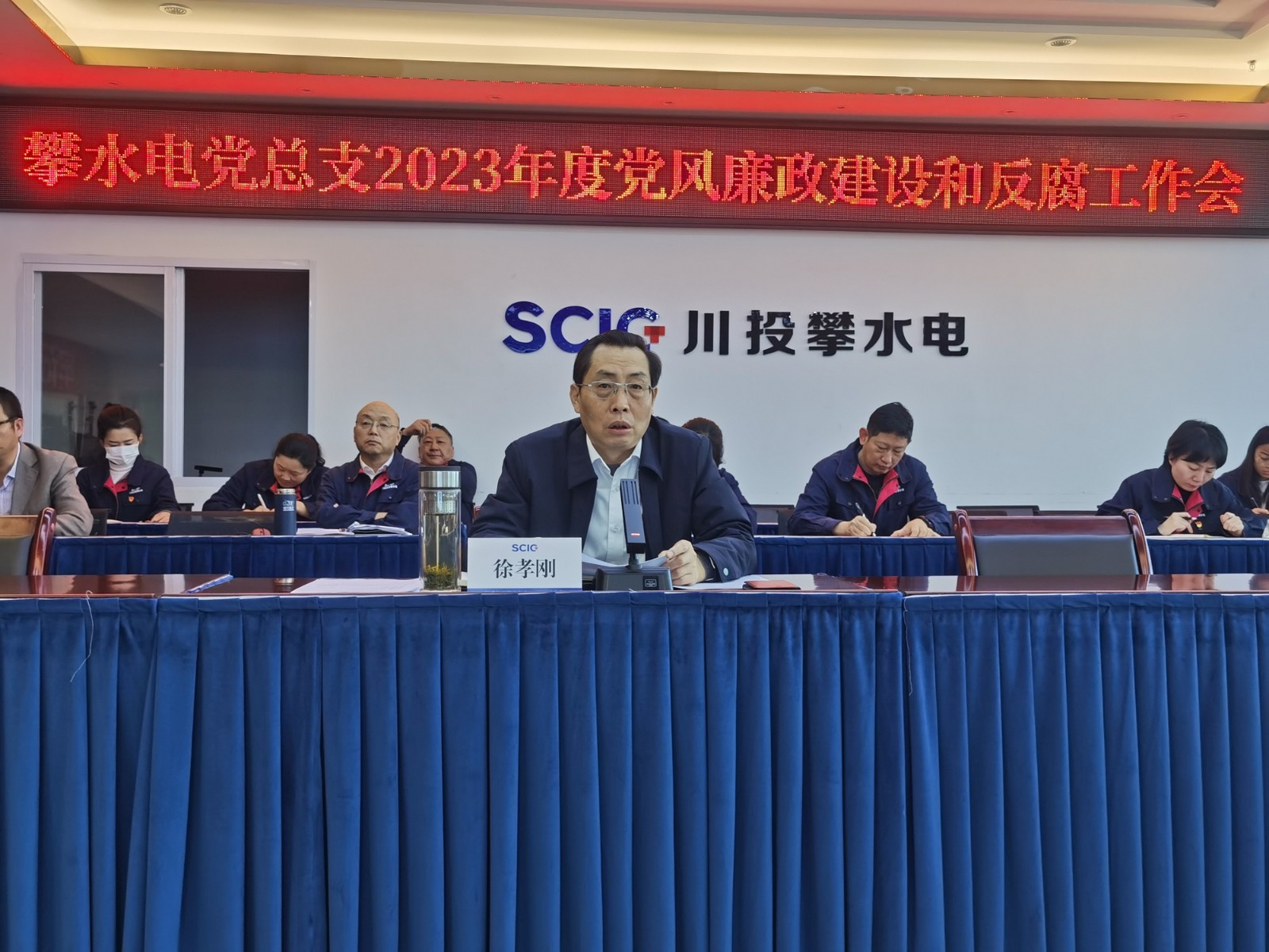 1月18日,攀水電公司黨總支組織召開2023年度黨風廉政建設和反腐敗工作會。會議由公司黨總支委員、紀檢小組長楊銳主持,川投能源副總經理、攀水電公司黨總支書記、董事長徐孝剛出席會議并講話,公司在攀領導班子成員參加了會議,公司各部門負責人、黨群工作部、紀檢工作部員工列席了會議。