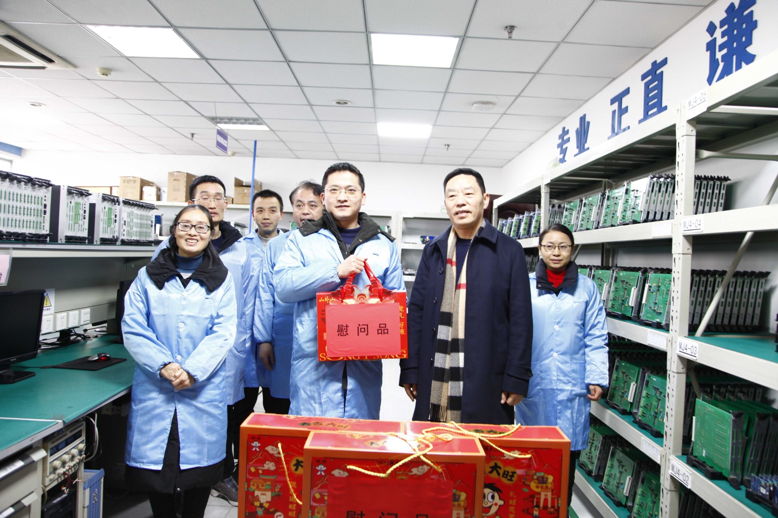 隨后,鄧凱一行參觀走訪了交大光芒生產基地并親切慰問生產一線員工。