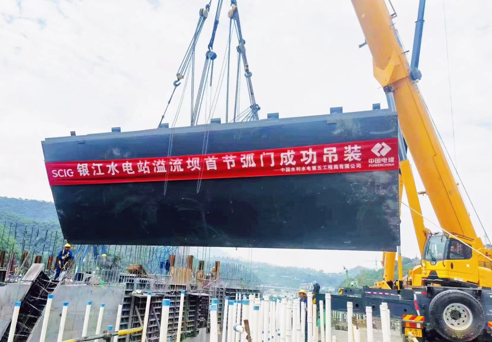 7月22日,正值銀江水電站開工建設五周年紀念日之際,工程建設再傳捷報,首節弧形工作門吊裝成功,標志著銀江水電站閘門安裝高峰期正式拉開序幕。