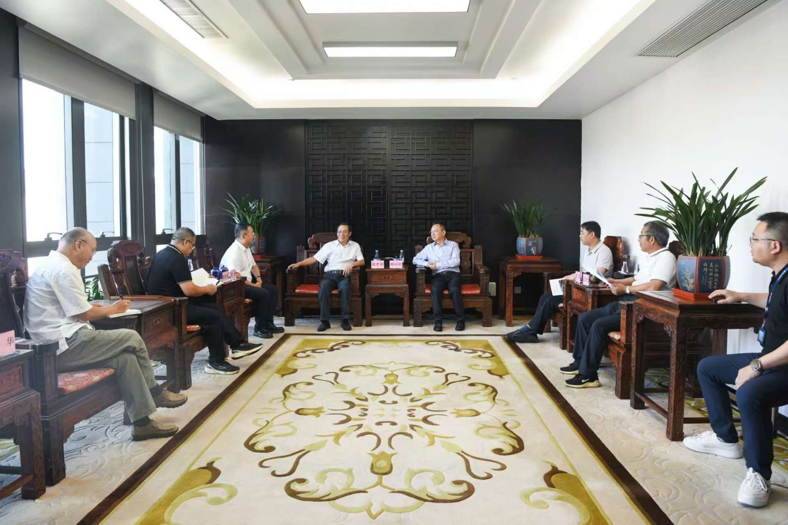 8月20日下午,川投能源副總經理、攀水電公司黨總支書記、董事長徐孝剛在武漢拜會長江設計集團黨委書記、董事長胡向陽,匯報銀江水電站工程建設情況。長江設計公司總經理、攀水電公司董事敖昕,長江設計公司高級咨詢師、銀江項目勘察設計總工汪慶元,攀水電公司黨總支副書記、董事會秘書、工會主席鄧勇,相關部門人員參加會見。