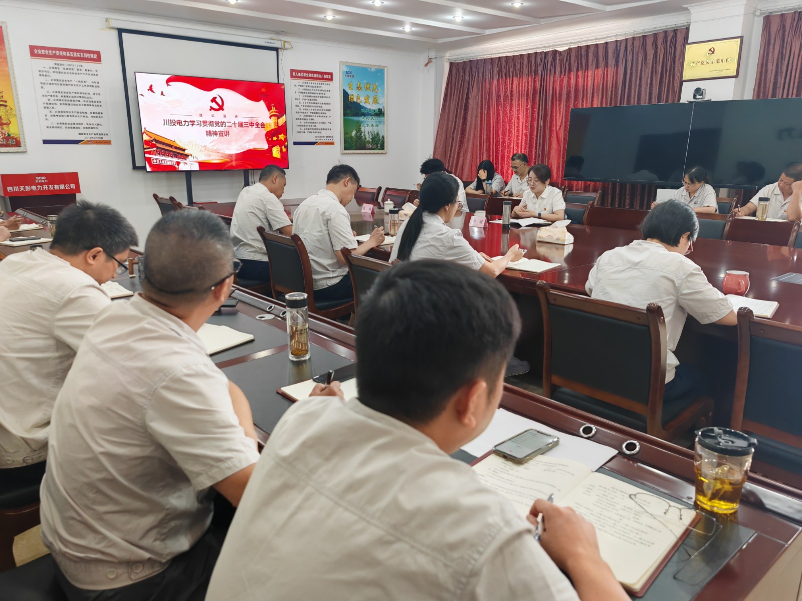 就天彭電力貫徹落實全會精神,謝麗結合公司實際提出了四點要求:一是學深悟透全會精神。要堅持集中學習和個人自學相結合,注重融會貫通、推動學以致用,把思想和行動統一到全會部署的目標任務上來,切實把學習成果轉化為推動企業發展的強大動力。二是攻堅克難抓好改革。要聚焦做強做優做大,牢牢把握符合公司屬性和清潔能源主營業務方向的戰略機遇,認真落實優化經濟布局結構、完善科技創新機制、提升公司治理現代化水平的各項改革舉措,切實提高發展質量和經濟效益。三是統籌發展和安全。要層層壓緊壓實安全生產責任,落實落細各項防范舉措,扎實抓好防汛減災工作,確保完成年度安全生產經營目標任務。四是筑牢廉潔自律防線。嚴格遵規守紀,常態化開展黨紀學習教育、黨性教育和廉潔教育,引導黨員干部牢固樹立紀律規矩意識;認真抓好巡視巡察整改“回頭看”工作,規范“三重一大”事項決策,切實防范各類廉潔風險,營造風清氣正的良好政治生態。