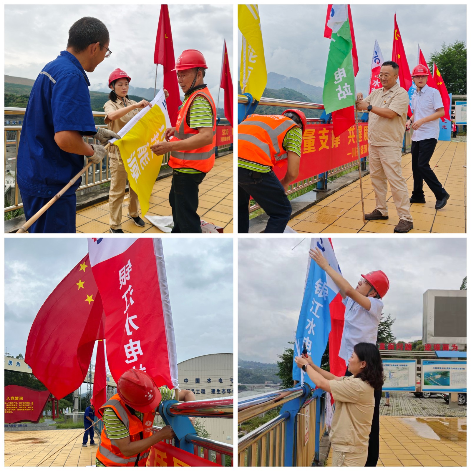 在大家的共同努力下,一面面嶄新鮮艷的五星紅旗,一幅幅絢麗的彩旗掛在黨建宣傳陣地和施工區(qū)域,紅旗彩旗與綠水青山交相輝映,隨著江風襲來迎風招展,構成了金沙江畔的美麗畫卷。每名黨員都用勞動之美迎接國慶節(jié)的到來,用務實的工作作風確保實現(xiàn)銀江水電站年底發(fā)電目標,用實際行動向祖國母親75歲華誕獻禮。