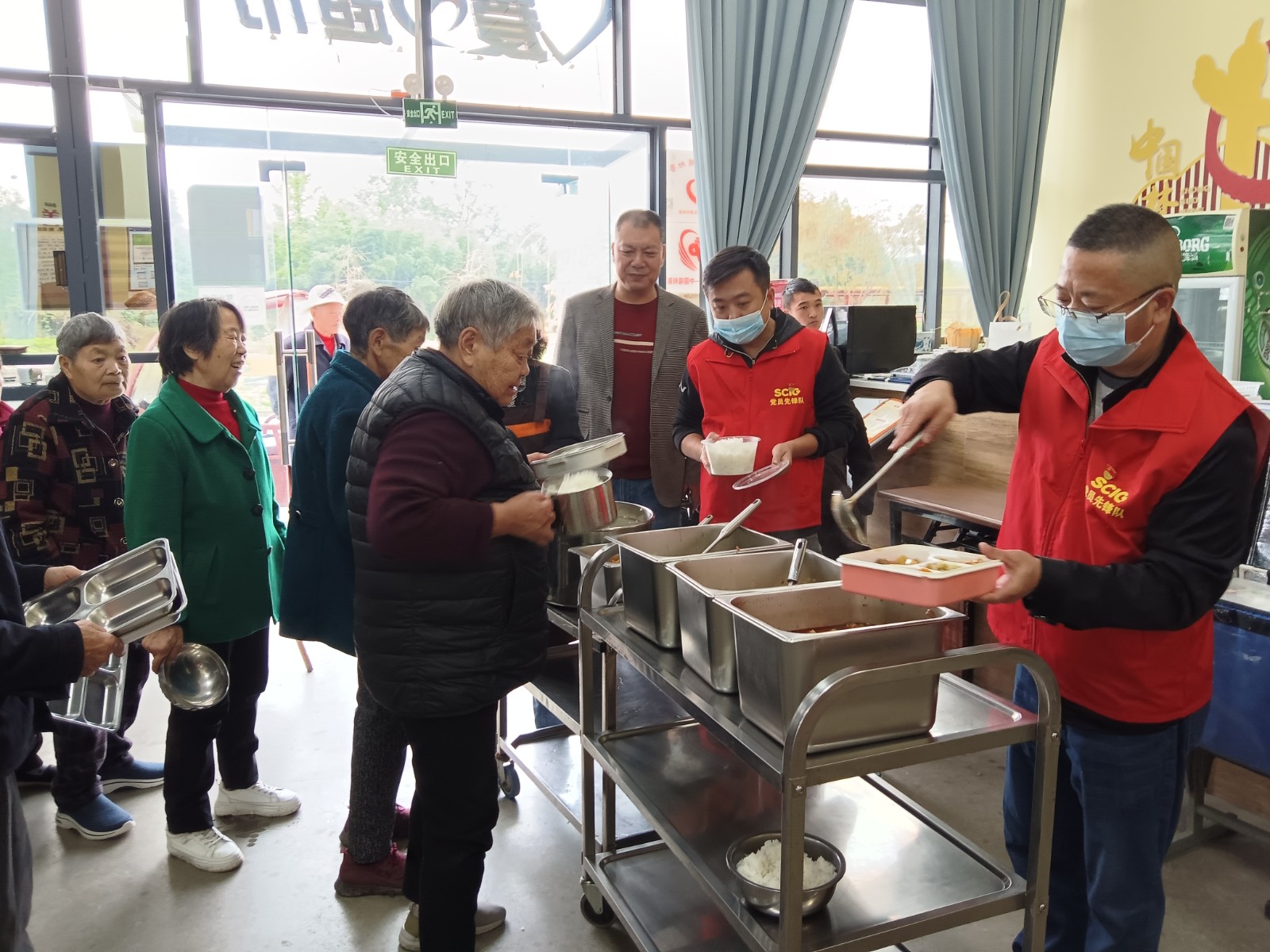 井然有序的活動現場,身著醒目紅色馬甲的黨員們迅速分工、密切合作,有的拿起掃帚、拖把和抹布開展衛生清潔,從地面到墻面、從桌椅到餐具的每一個角落,為老人們營造整潔舒適的就餐環境;有的為行動不便的老年人及時送餐上門,讓他們能心情愉悅地享用美食;有的則陪伴在老人身邊與他們親切交談,關愛他們的健康與需求,傾聽他們的心聲與故事。“爸媽食堂”內忙碌穿梭的黨員身影,構成了一幅幅溫馨動人的畫面。