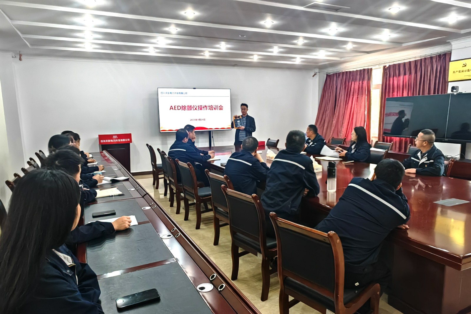 為進(jìn)一步提升員工應(yīng)對(duì)突發(fā)心臟驟停事件的應(yīng)急處置能力,切實(shí)筑牢企業(yè)安全生產(chǎn)防線,根據(jù)上級(jí)主管部門關(guān)于加強(qiáng)電力行業(yè)應(yīng)急能力建設(shè)的工作要求。近日,天彭電力邀請技術(shù)專家舉辦了關(guān)于AED除顫儀急救操作的專項(xiàng)培訓(xùn),讓公司廣大員工通過理論教學(xué)與模擬演練相結(jié)合的方式更好地掌握急救技能。