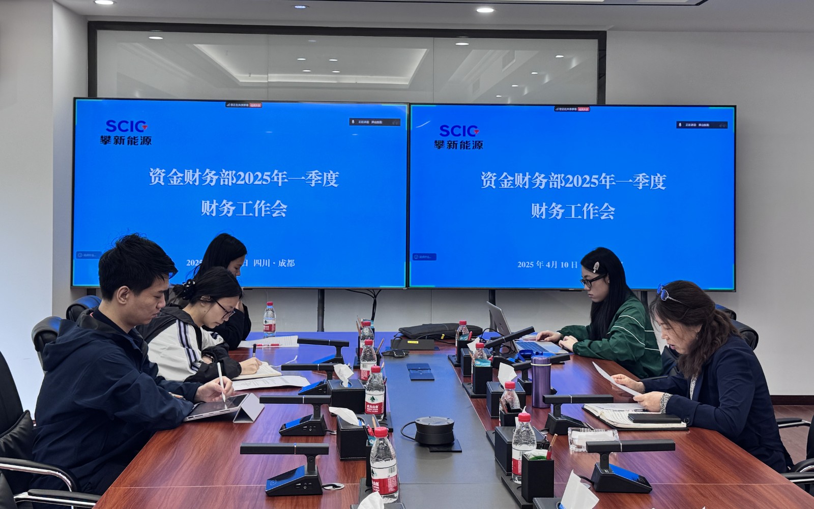 近日,攀新能源公司通過現場以及視頻會議方式組織召開2025年一季度財務分析會。公司財務總監劉曉燕主持會議,攀新能源公司及其各子公司財務人員、屏山抽蓄公司財務人員參加會議。
