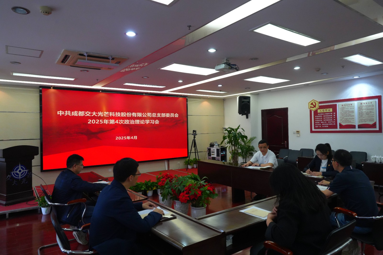 2025年4月27日至29日,交大光芒黨總支召開2025年第4次政治理論學習會,深入學習貫徹習近平總書記關于加強黨的作風建設的重要論述和中央八項規定及其實施細則精神等內容,會議由黨總支書記、常務副總經理王濤主持,黨總支委員及經營班子成員參加學習會。