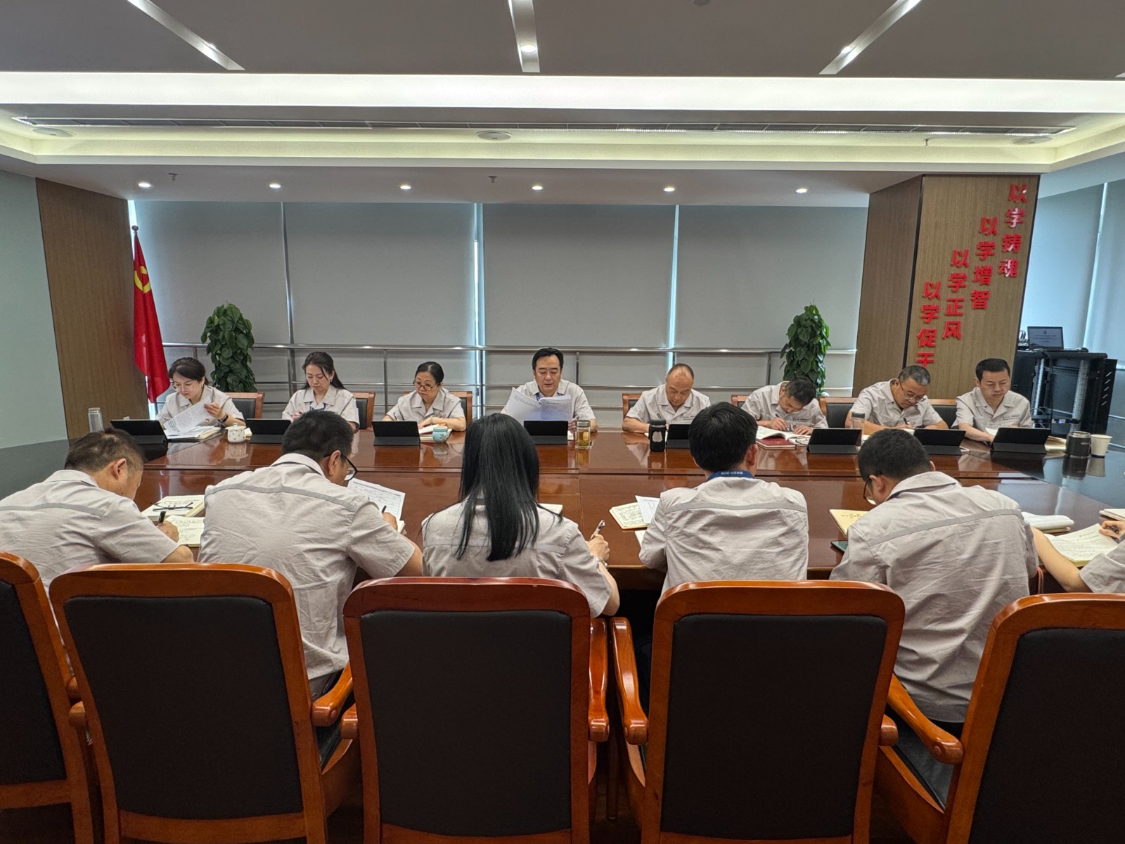 會議聚焦“深化作風建設 筑牢廉潔防線”主題,通過領學與傳達相結合的方式,深入學習中央及省委最新文件精神、《習近平關于加強黨的作風建設論述摘編》《中央八項規定精神正負面清單》部分章節,學習了嚴重違反中央八項規定精神的警示案例,2025年省委警示教育大會精神,結合企業實際,對違規收送禮品禮金、違規吃喝、違規操辦婚喪喜慶事宜、違規發放津貼補貼和福利等專題進解讀,明確行為邊界,劃清紀律紅線,要求全員嚴守紀律底線以案為鑒,深化作風建設,對照自查、立行立改。