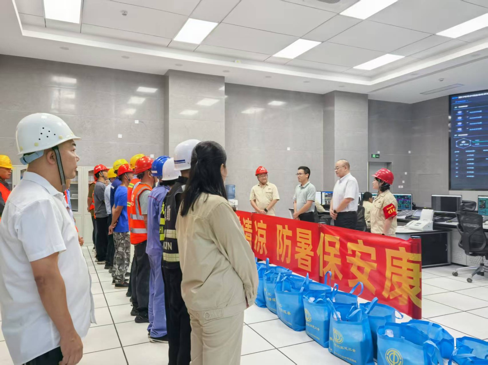 慰問現(xiàn)場,張平首先向銀江水電站一線人員表示親切的問候,對大家在高溫酷暑下堅守崗位、辛勤工作的精神表示高度的贊揚,叮囑大家一定要保證安全建設(shè)、安全生產(chǎn),全面做好各類防護措施,注意自身安全和健康。希望攀水電公司能夠繼續(xù)發(fā)揚優(yōu)良傳統(tǒng),牢固樹立以人為本的理念,壓實安全管理責(zé)任,認(rèn)真落實安全生產(chǎn)月活動要求,密切關(guān)注氣象預(yù)警,嚴(yán)格執(zhí)行高溫天氣作業(yè)規(guī)定,切實維護廣大職工的勞動安全健康權(quán)益,做好防暑降溫服務(wù)工作,在銀江水電站形成人人抓安全、人人擔(dān)責(zé)任的良好氛圍,切實筑牢安全生產(chǎn)防線。