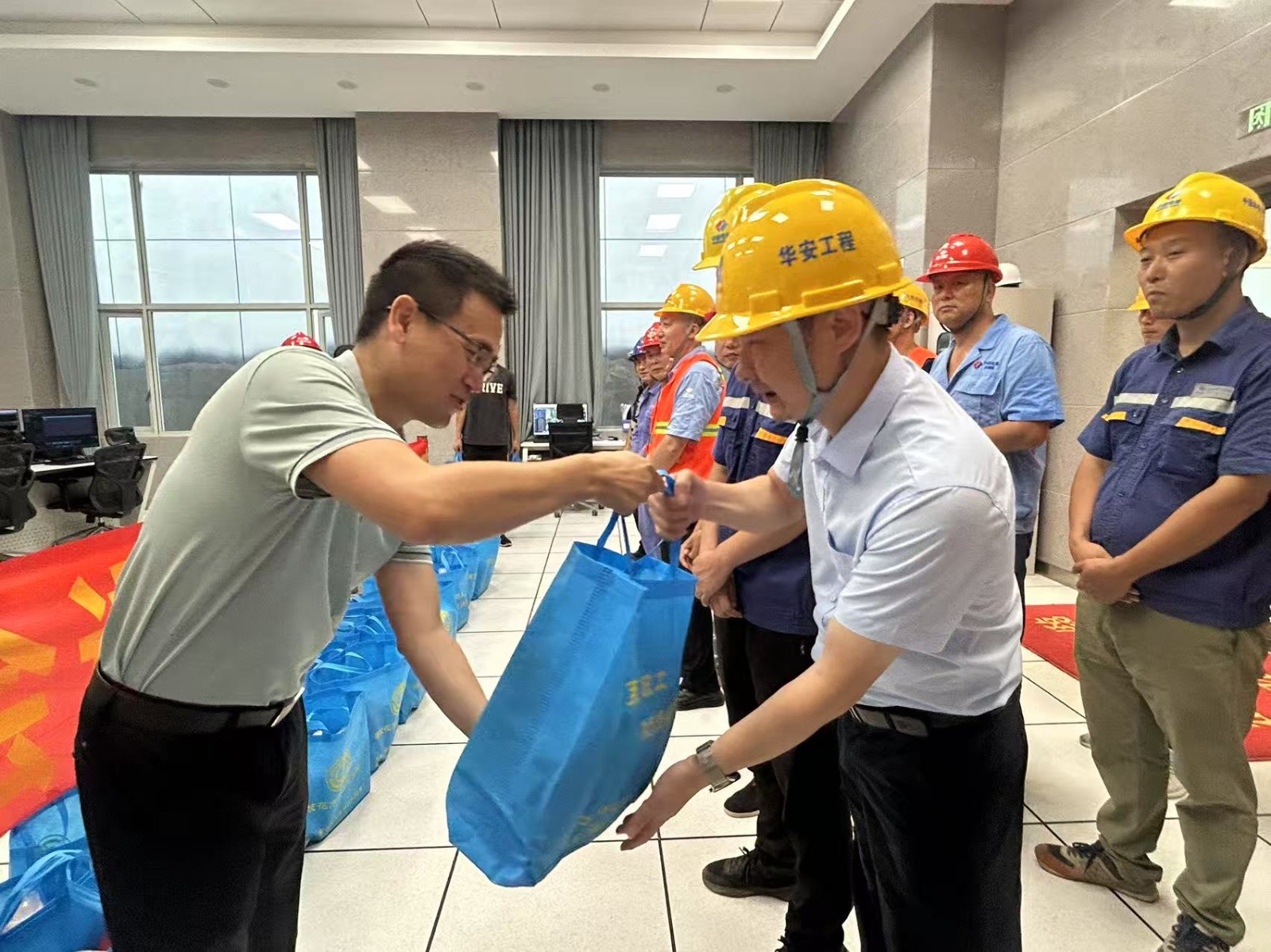 張平一行在現(xiàn)場了解了銀江水電站工程建設(shè)和安全生產(chǎn)情況,向一線人員送上了洗發(fā)露、沐浴露、洗衣液等清涼物資300余份。“工會送來的不僅是清涼,更是暖心!”大家紛紛表示,雖然天氣炎熱,但感受到了“娘家人”的貼心關(guān)懷,一定會克服高溫困難,時刻牢記“安全第一、生命至上”理念,以更加飽滿的熱情投入工作中。