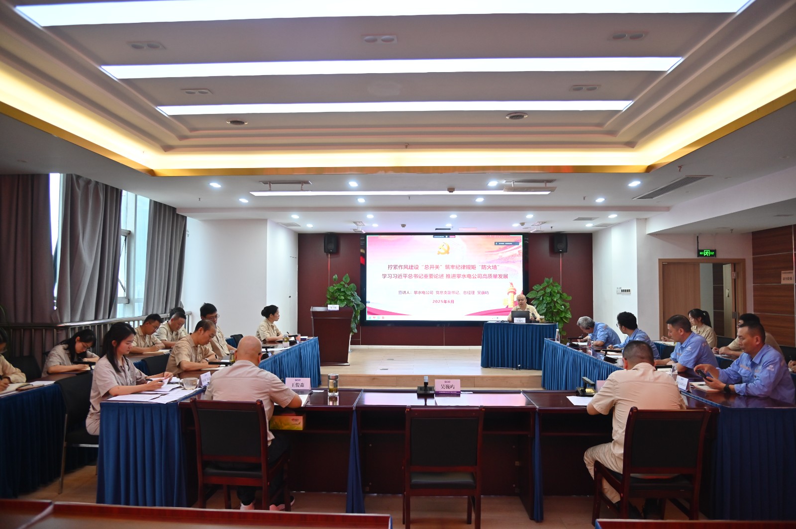 為進一步推進深入貫徹中央八項規定精神學習教育走深走實,推動作風建設常態化長效化,6月29日,攀水電公司黨總支副書記、總經理吳巍嶼以“擰緊作風建設‘總開關’,筑牢紀律規矩‘防火墻’”為題講授了專題黨課,公司機關第二黨支部黨員、水電七局黨支部黨員及計劃合同部員工共計20余人參加學習。