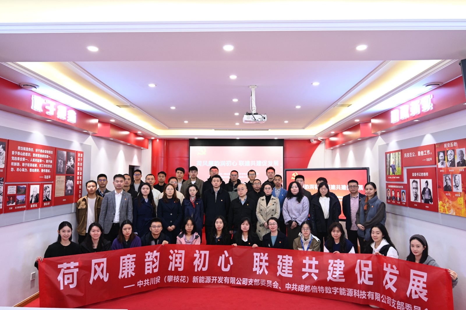 為強(qiáng)化黨建引領(lǐng),持續(xù)推動(dòng)黨建鏈賦能產(chǎn)業(yè)鏈,積極打造“黨建強(qiáng)、業(yè)務(wù)興”的共贏典范,10月31日,川投(攀枝花)新能源開發(fā)有限公司(以下簡稱攀新能源)黨支部與成都倍特?cái)?shù)字能源科技有限公司(以下簡稱倍特?cái)?shù)能)黨支部在成都崇州“荷風(fēng)廉韻”廉潔文化教育基地聯(lián)合開展“荷風(fēng)廉韻潤初心 聯(lián)建共建促發(fā)展”主題黨建聯(lián)建活動(dòng)。活動(dòng)在莊嚴(yán)肅穆的重溫入黨誓詞中拉開帷幕,全體黨員進(jìn)一步筑牢初心使命,強(qiáng)化了在能源革命中當(dāng)先鋒、作表率的責(zé)任擔(dān)當(dāng)。