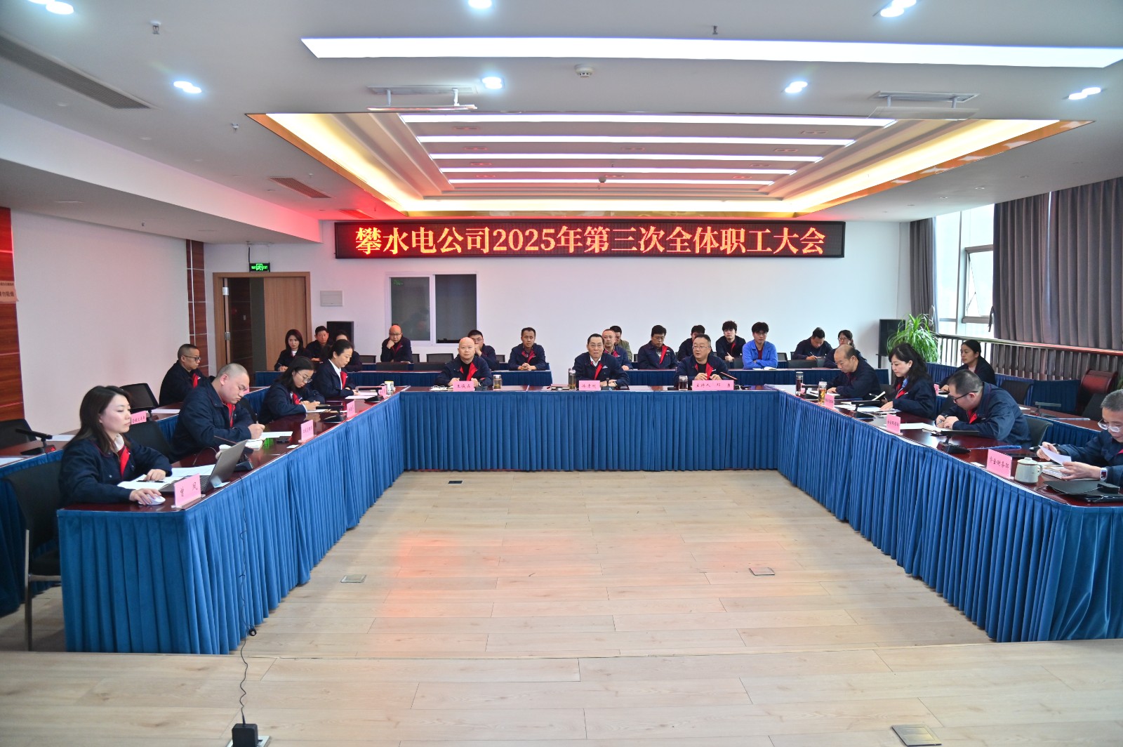 11月5日,攀水電公司組織召開了2025年第三次全體職工大會,會議由公司黨總支副書記、董事會秘書、工會主席鄧勇主持,公司職工60人參加會議。