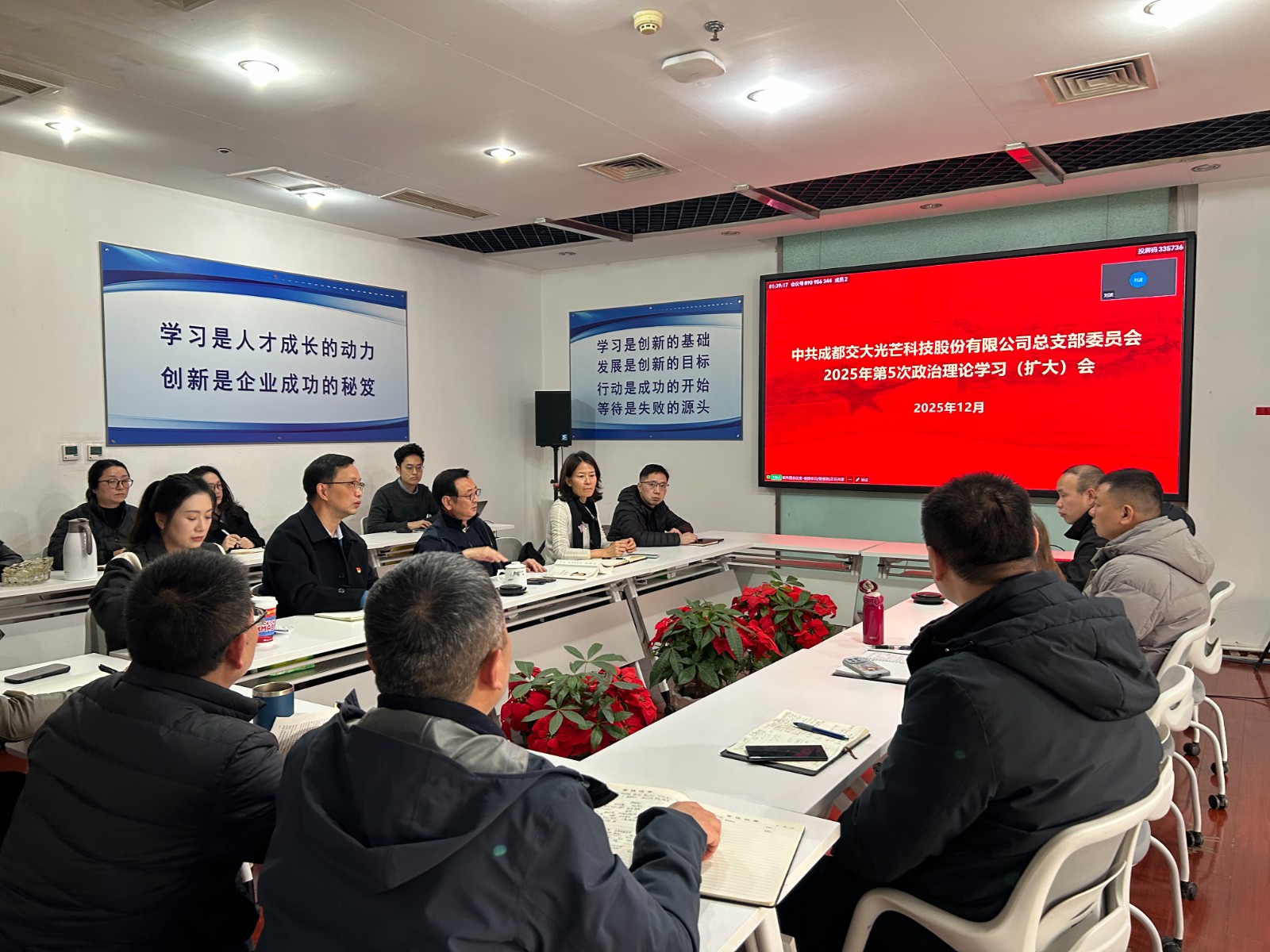 12月22日,交大光芒黨總支召開(kāi)2025年第5次政治理論學(xué)習(xí)(擴(kuò)大)會(huì)。會(huì)議由黨總支書(shū)記、常務(wù)副總經(jīng)理王濤主持,黨總支委員、經(jīng)營(yíng)班子成員和中層及以上管理人員參加學(xué)習(xí)。