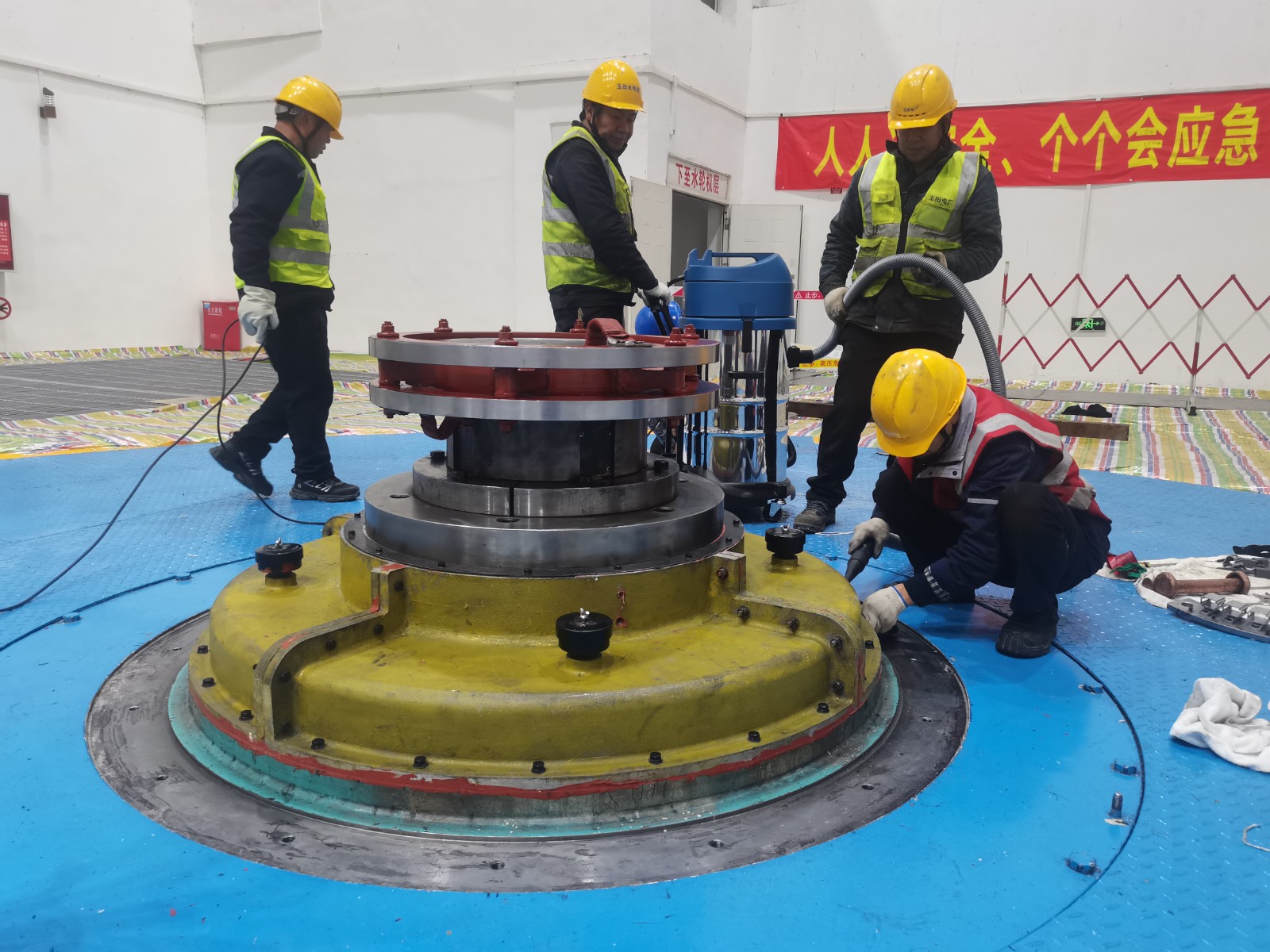 攻堅(jiān)克難安全管控,打好檢修“保衛(wèi)戰(zhàn)”。檢修現(xiàn)場,全體參檢人員秉持“嚴(yán)、細(xì)、實(shí)”的工作作風(fēng),規(guī)范操作,安全作業(yè),在轟鳴的廠房內(nèi)開展設(shè)備“健康保衛(wèi)戰(zhàn)”。安全旁站監(jiān)督貫穿檢修全過程,實(shí)現(xiàn)了“零違章、零事故、零傷害”的安全既定目標(biāo),充分驗(yàn)證了安全管理體系的有效性與可靠性。通過科學(xué)規(guī)劃工序、強(qiáng)化現(xiàn)場管控,本次檢修有序完成了25項(xiàng)標(biāo)準(zhǔn)項(xiàng)目,以及完成上下導(dǎo)軸承油槽蓋及導(dǎo)電環(huán)裝置兩項(xiàng)技改和消除轉(zhuǎn)輪等重要設(shè)備的非常規(guī)缺陷。全面達(dá)成檢修目標(biāo),為3#機(jī)組長期穩(wěn)定運(yùn)行提供堅(jiān)實(shí)保障。