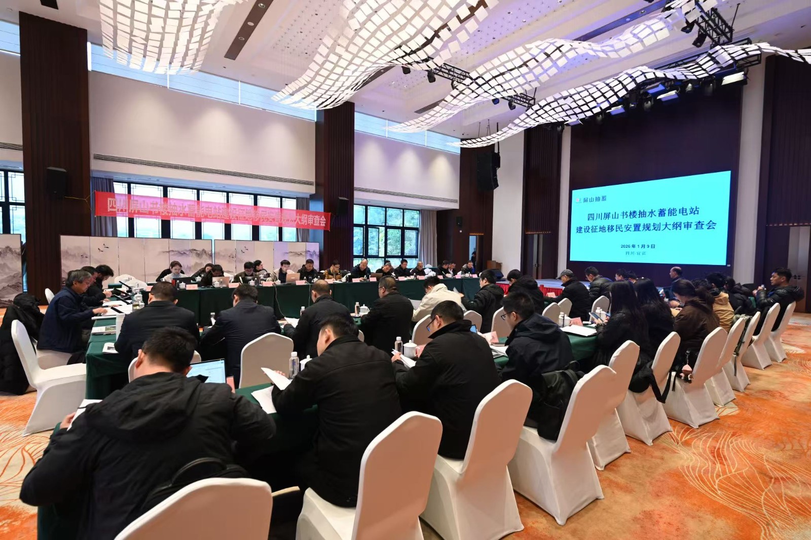 1月8日至9日,四川省屏山書(shū)樓抽水蓄能電站《征地移民安置規(guī)劃大綱》審查會(huì)議在屏山書(shū)樓召開(kāi)。會(huì)議由水電水利規(guī)劃設(shè)計(jì)總院首席技術(shù)專家郭萬(wàn)偵主持,四川省水利廳三級(jí)調(diào)研員王珂,川投能源副總經(jīng)理、屏山抽蓄公司董事長(zhǎng)王行仁出席會(huì)議,水利水電規(guī)劃設(shè)計(jì)總院專家組,四川省、宜賓市、屏山縣政府相關(guān)部門,川投能源、屏山抽蓄、攀新能源及中國(guó)電建成都院等單位代表和專家參加會(huì)議。