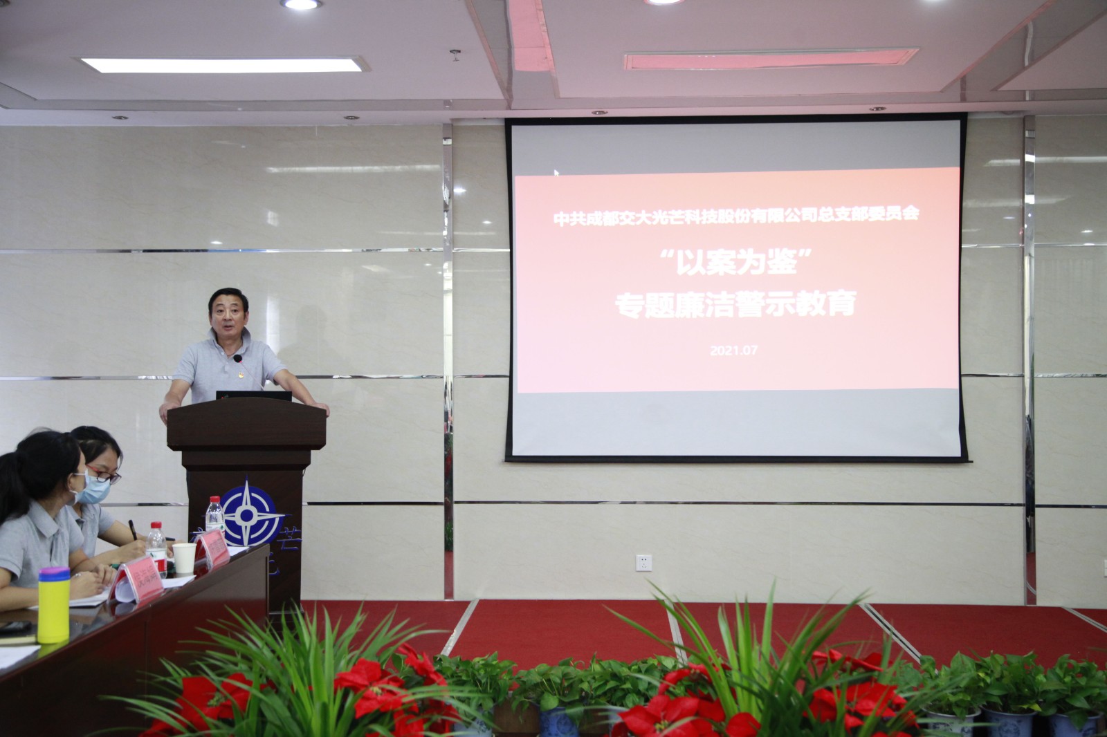 交大光芒全體班子成員、重點關(guān)鍵崗位人員、在家黨員參加警示教育會。