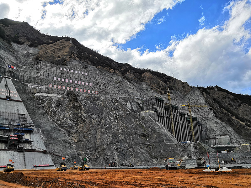 目前,正值兩河口電站工程建設(shè)的重要時(shí)期,到處都是熱火朝天的勞動(dòng)畫(huà)面。上百家參建單位、2萬(wàn)多名建設(shè)者揮灑“艱苦不怕吃苦、缺氧不缺精神”的豪邁情懷,克服“五高六大兩長(zhǎng)”難點(diǎn)和高寒海拔惡劣自然環(huán)境、復(fù)雜的建設(shè)環(huán)境等不利條件,工程建設(shè)實(shí)現(xiàn)一個(gè)又一個(gè)里程碑目標(biāo)。在高土石壩,上百臺(tái)推土機(jī)在工地上忙碌穿梭,建設(shè)者們忙碌的身影和機(jī)械的隆隆聲交織回蕩在高山峽谷中,這座世界第3高壩正日益成型;在兩岸巖壁上,為了在200層樓高的幾乎垂直的巖壁中固定15000根錨索,黨員帶頭沖鋒在前,硬是將一根根的錨索肩扛手提抬了上去;在地下廠房,建設(shè)者們克服潮濕昏暗、溫差變化大的不利條件,晝夜不停精心安裝碩大無(wú)比的發(fā)電裝置,工地上隨處可見(jiàn)一面面黨員突擊隊(duì)、青年突擊隊(duì)火紅的旗幟迎風(fēng)飄揚(yáng),成為一道道亮麗的風(fēng)景線。
